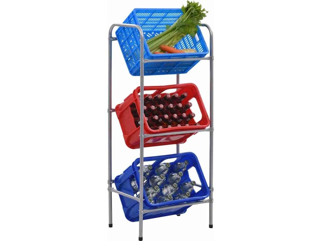 Vzhledem k šikmému designu budete mít vždy dobrý přehled o obsahu přepravek a snadno se k němu dostanete. Tento regál na přepravky je vhodný pro 3 přepravky na potraviny, Euro přepravky na nápoje nebo standardizované přepravky.