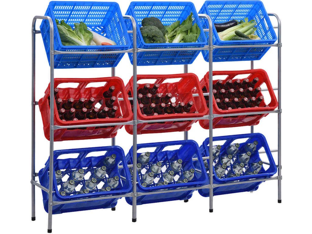 Tento praktický a prostorově úsporný regál bude ideální pro uložení skládacích přepravek na potraviny a nápoje. Oceníte ho jak v domácnosti, tak v obchodech a skladech s potravinami, jelikož s přepravkami si je třeba poradit téměř všude.