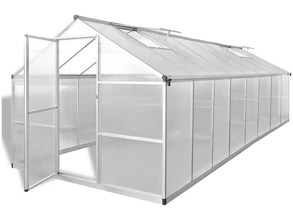 Skleník disponuje bytelnou hliníkovou konstrukcí, která zajišťuje jeho výtečnou stabilitu a nevyžaduje žádnou údržbu. Okapový systém efektivně odvádí vodu a dva průduchy ve střeše zajišťují optimální cirkulaci vzduchu během horkých dnů. Střešní okno je posuvné, takže se snadno instaluje, a zároveň je stabilnější než při použití svorek. Nevyžaduje žádné další pomůcky k otevírání či zavírání. Veškeré montážní příslušenství je součástí balení, sestavení skleníku je proto jednoduché.