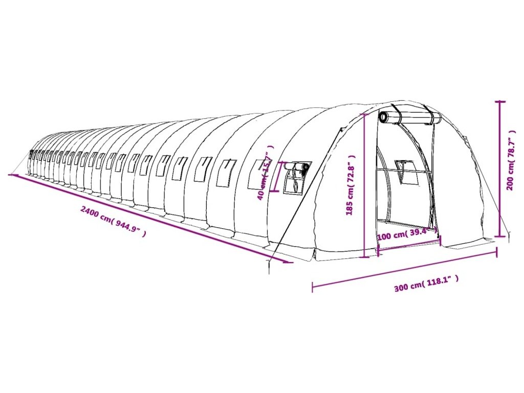 Skleník s ocelovým rámem 72 m² 24 x 3 x 2 m [3188049]