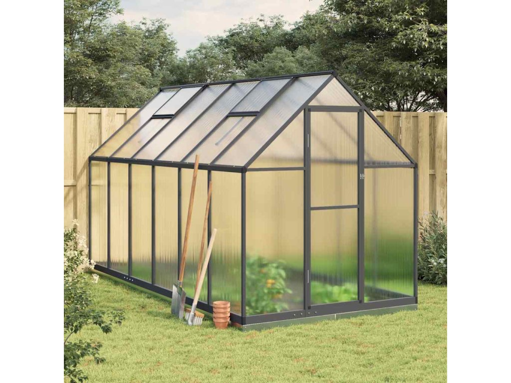 - Praktický design: Tento rám skleníku je vybaven spodní hliníkovou profilovou konstrukcí o výšce 6 cm, kterou lze snadno zapustit do země, čímž se ušetří další náklady na základnu. Součástí je také pozinkovaná ocelová základna o výšce 7 cm, která zvyšuje stabilitu konstrukce.