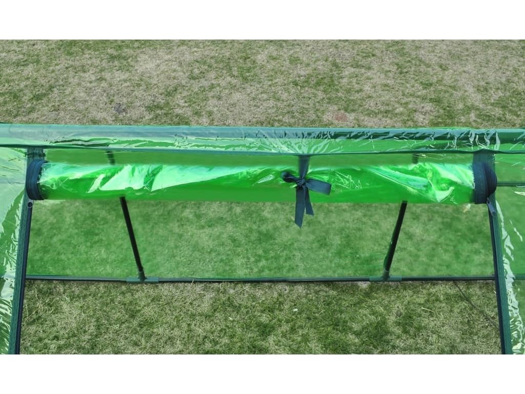 Skleník má průhledný zelený kryt, který umožňuje přístup slunečního světla k rostlinám a květinám. Vzdoruje mrazu a UV záření, takže se minimalizují škody způsobené povětrnostními vlivy. Je také odolný proti roztržení a prakticky nerozbitný, což z něj činí skvělou alternativu k tradičním skleněným skleníkům.