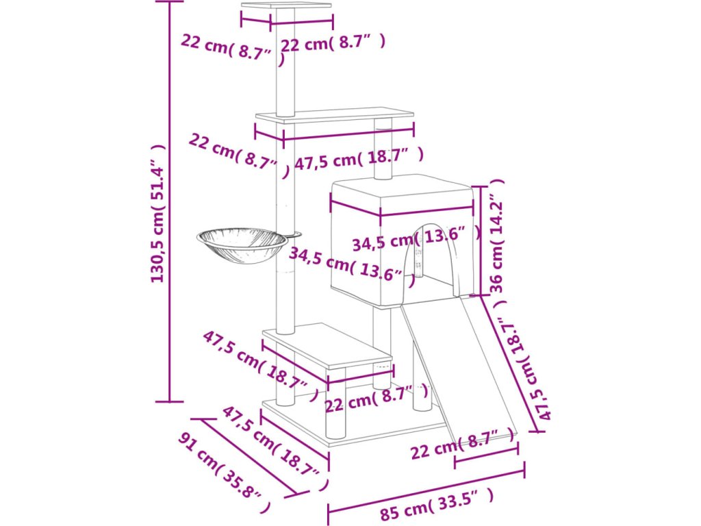 - Všestranná věž pro kočky: Víceúrovňový nábytek pro kočky je navržen s domečkem, košem, žebříkem a plošinami, které poskytují kočkám ideální místo pro šplhání, sezení, škrábání, schovávání se a také k odpočinku.