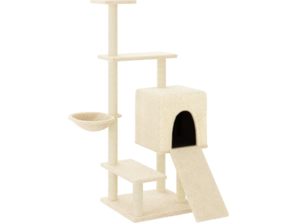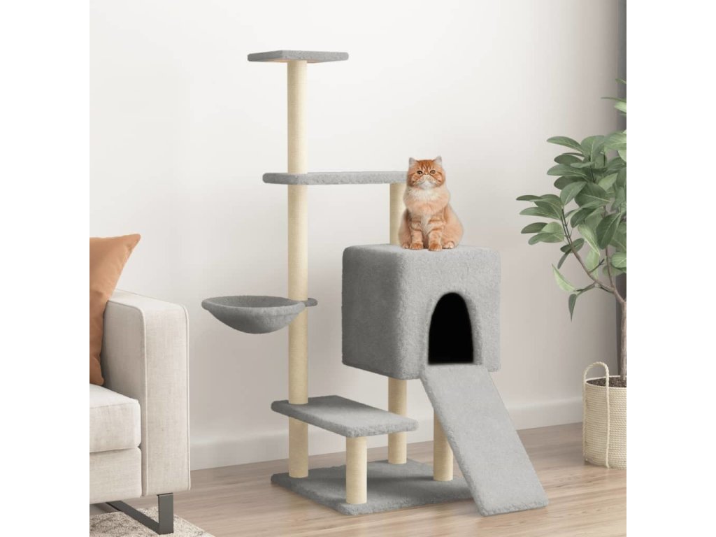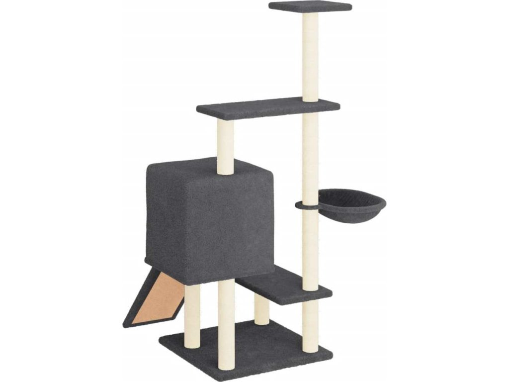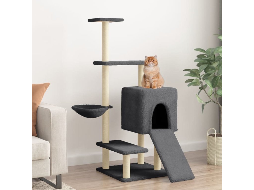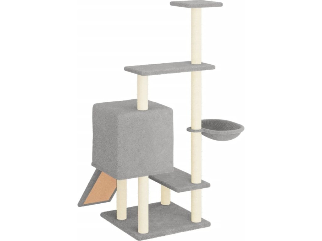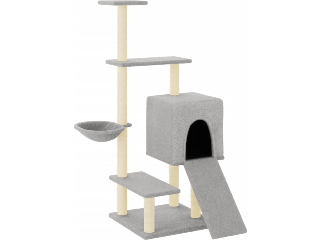 - Přírodní sisalové sloupky: Odolné a pevné sloupky s přírodním sisalem tohoto škrabadla dokonale uspokojí škrabací instinkt koček a zabrání jim poškrábat váš nábytek.