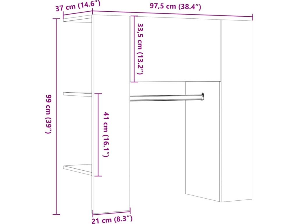 - Rozměry: 97,5 x 37 x 99 cm (Š x H x V)