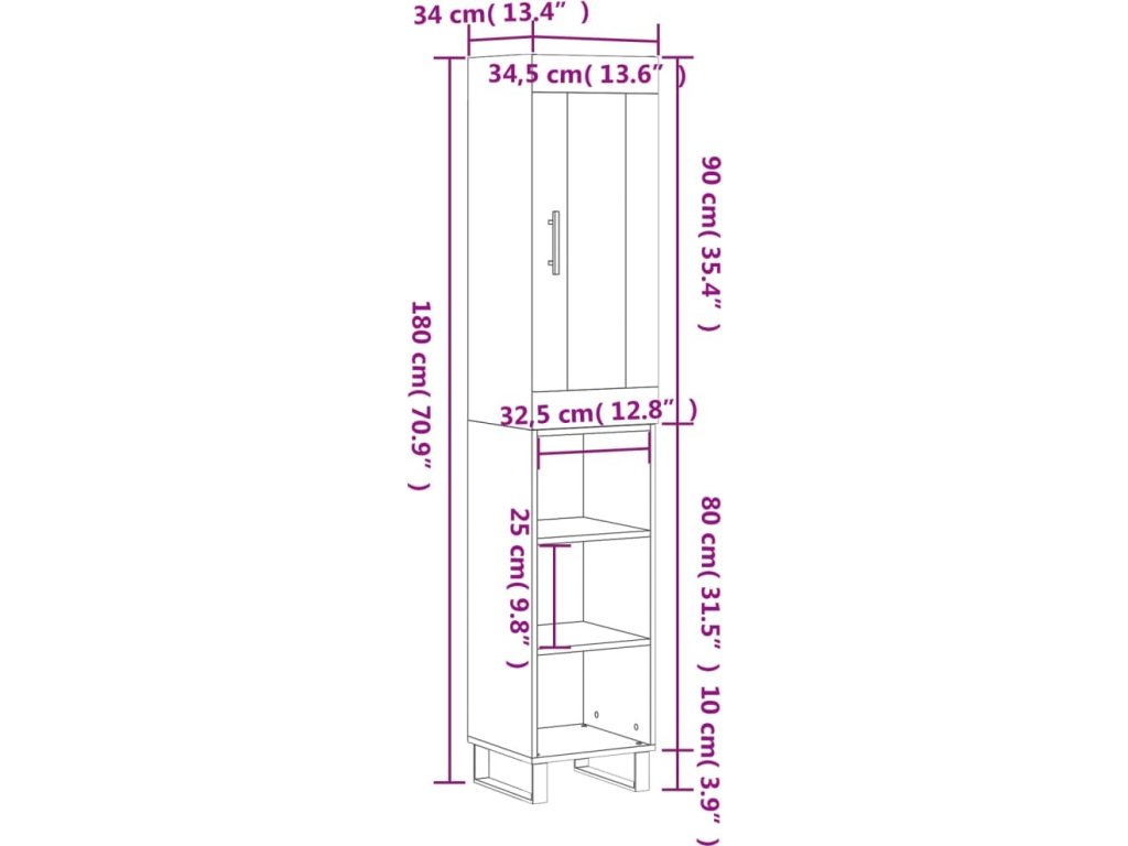 - Rozměry horního dílu skříně: 34,5 x 34 x 90 cm (Š x H x V)