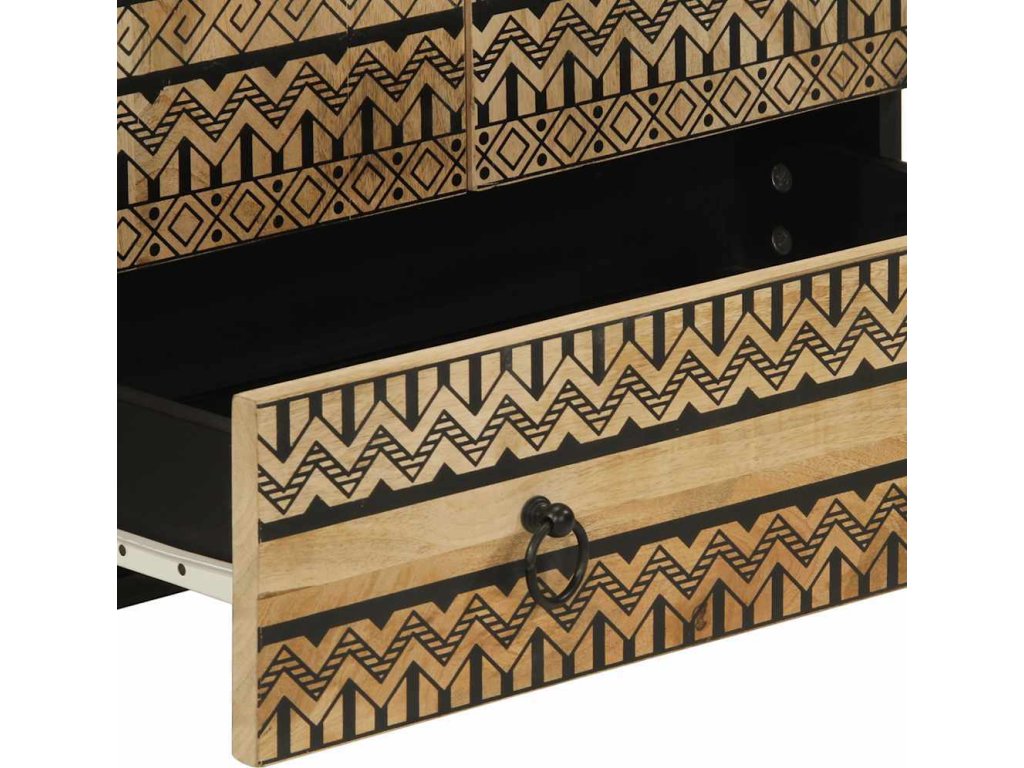 - Masivní mangovníkové dřevo: Masivní mangovníkové dřevo je pevné tropické tvrdé dřevo, ze kterého se vyrábí robustní nábytek. Krásná kresba dřeva propůjčuje každému kusu nábytku jeho jedinečný a od všech ostatních lehce odlišný vzhled.