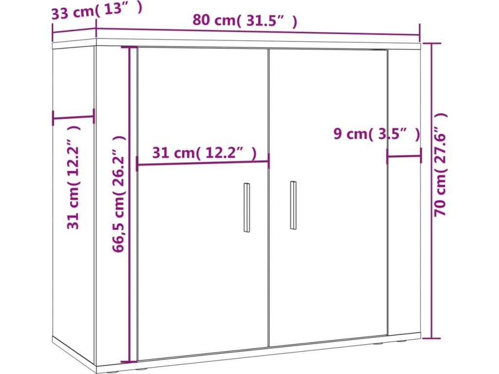- Rozměry příborníku: 80 x 33 x 70 cm (D x Š x V)