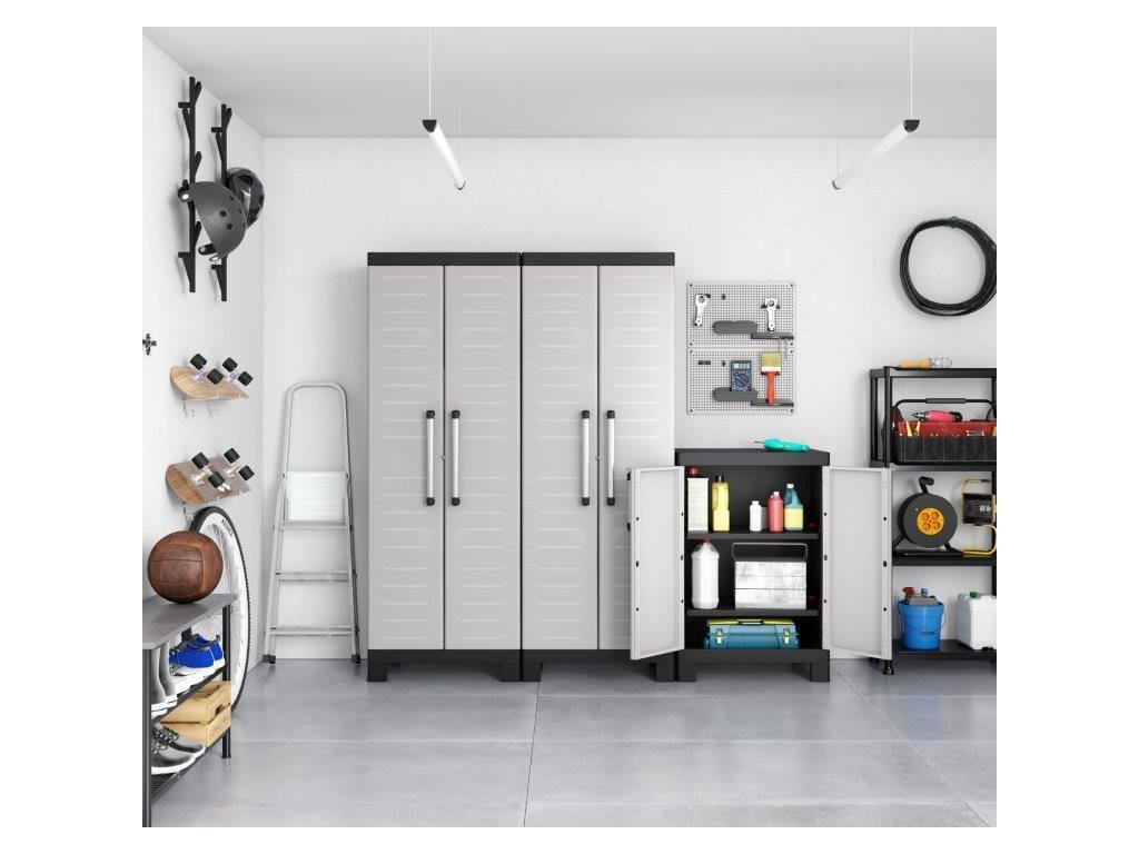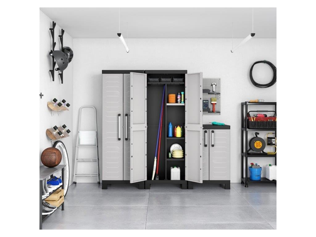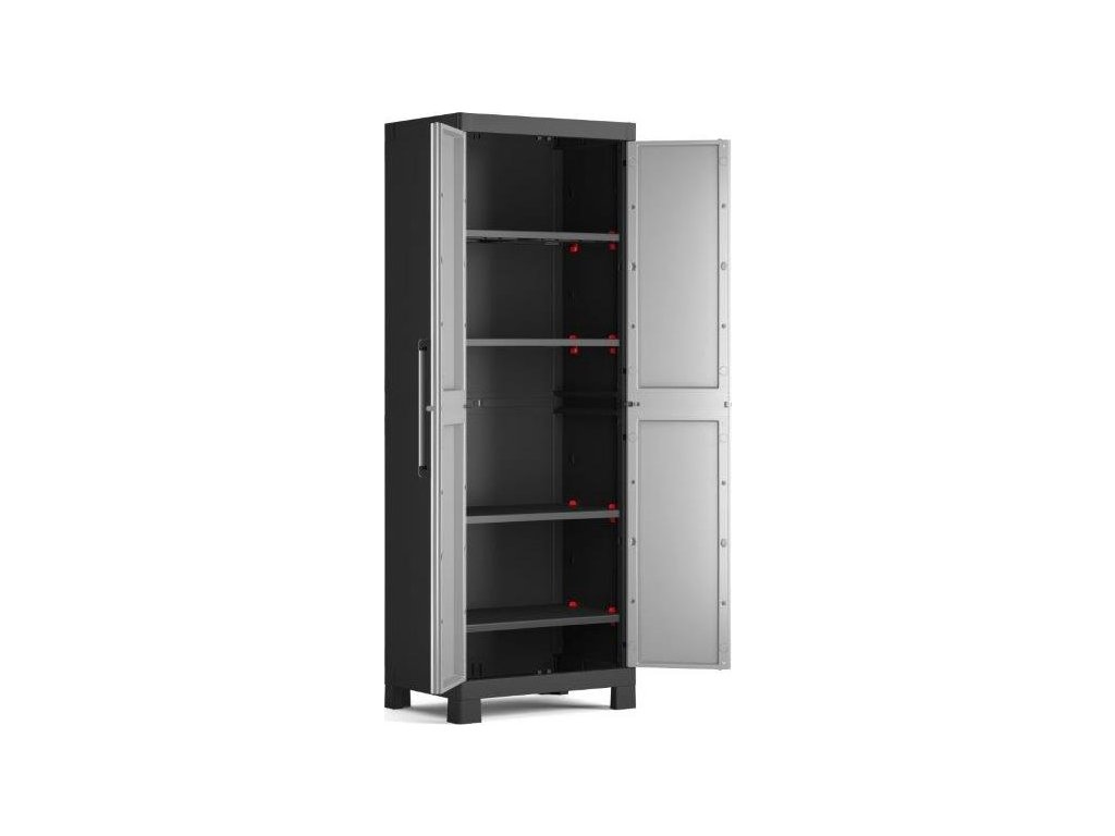Skříň Keter Detroit High obsahuje celkem 4 přídavné police, které maximálně zpřehlední organizaci vnitřního prostoru. Každá z nich využívá bezpečnostní pojistku SLO pro snadné výškové přizpůsobení a rovněž nabízí maximální nosnost až 15 kg, což přijde vhod pro výrazně těžší předměty všeho druhu. V útrobách skříně tak pohodlně uchováte i rozličné dílenské a zahradní nářadí, které by se jinam nevešlo. Velkou výhodou produktové řady Keter Detroit je také jednotný spojovací systém, díky kterému vytvoříte kompletní skříňovou stěnu pro všestranné využití dle vašich potřeb a preferencí.