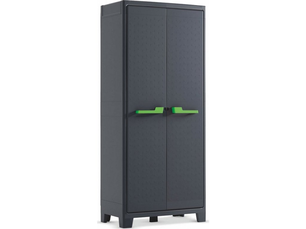 Konstrukce z kvalitního plastu vyčnívá svým moderním vzhledem a poskytuje skříni zvýšenou odolnost vůči prachu, vlhkosti, vodě, rzi, hnilobě, UV záření či hrubému zacházení. Zabudovaný podlahový panel chrání obsah skříně proti vodě, bahnu, prachu a dalším nečistotám. Díky možnosti uzamčení ochráníte veškeré uschované cennosti před odcizením, tudíž bude vnitřní obsah v naprostém bezpečí za každé situace. Skříň se díky své voděodolnosti hodí i do venkovního prostředí.