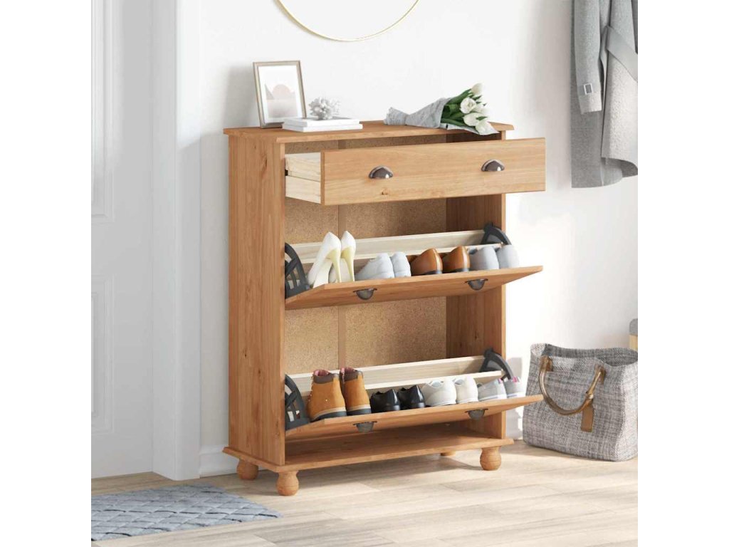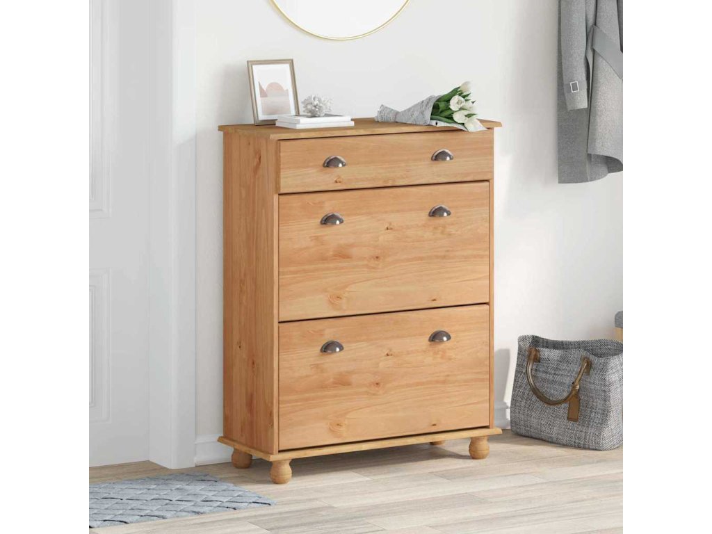Skříň na obuv ASKIM Hnědá 85 x 35 x 108 cm Masivní borové dřevo [4105436]