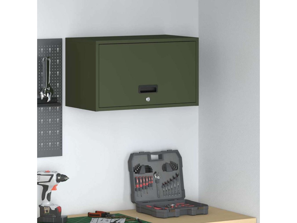 Skříň na zeď do garáže Olivově zelená 60 x 33 x 35 cm [883283]