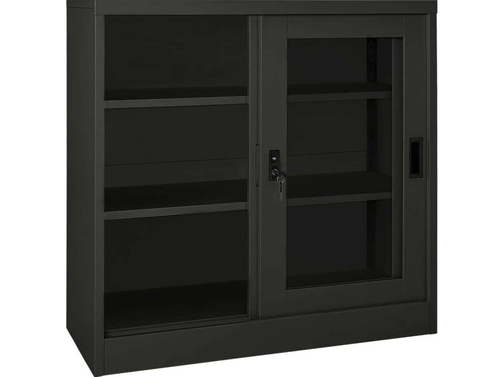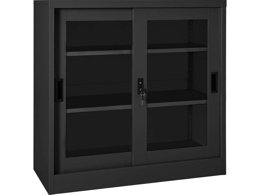 Úložná skříň je vyrobena z oceli a tvrzeného skla, takže je mimořádně robustní a odolná. Posuvné dveře zajišťují hladké otevírání a zavírání. Skříň má navíc výškově nastavitelné police, je tedy vhodná pro ukládání složek různých velikostí. Kartotéka je také vybavena zámkem, který chrání vaše osobní dokumenty před nevítanými hosty. Skříně s posuvnými dveřmi se skvěle hodí do místností s omezeným prostorem nebo do úzkých uliček, kde není možné použít skříň s křídlovými dveřmi.