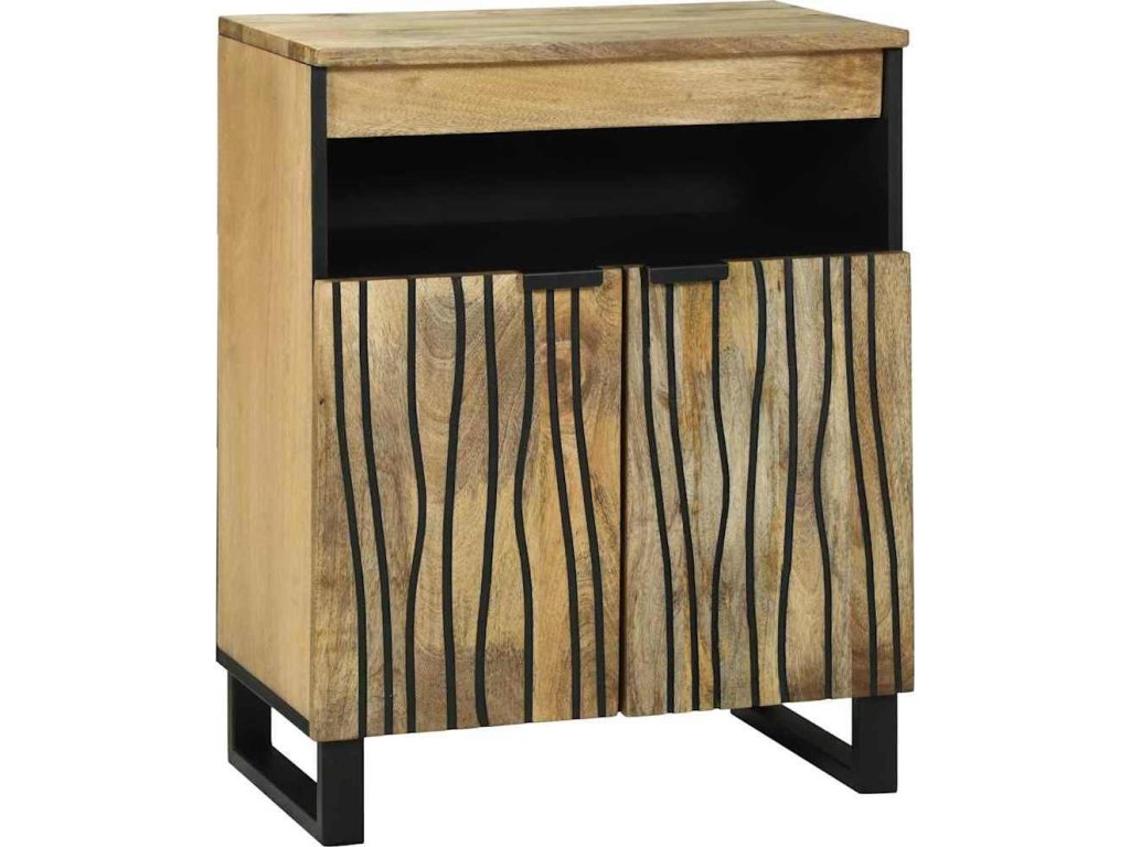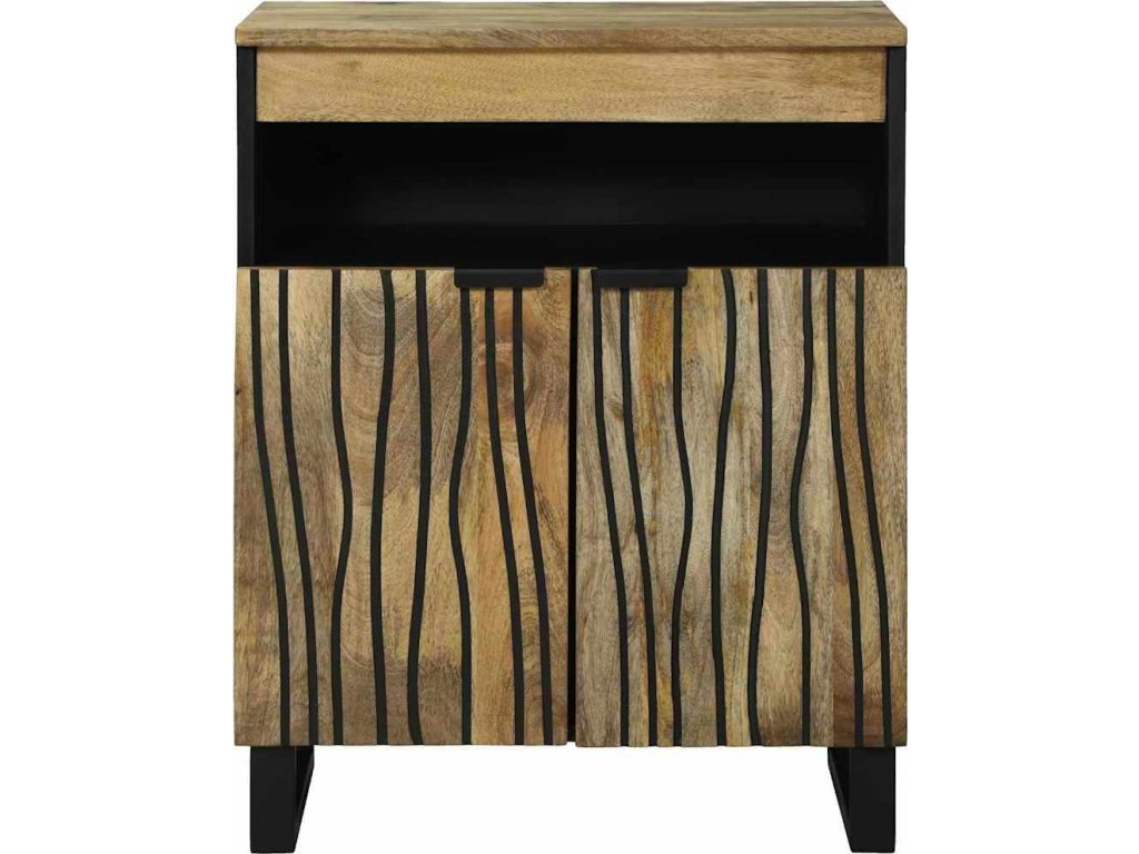 - Pevná konstrukce: Tato skříňka, vyrobená z masivního mangového dřeva a sekundárního inženýrského dřeva, je navržena tak, aby vydržela. Materiály zajišťují odolnost proti opotřebení, ideální pro každodenní používání. Je dostatek pevná na všechny vaše úložné potřeby.