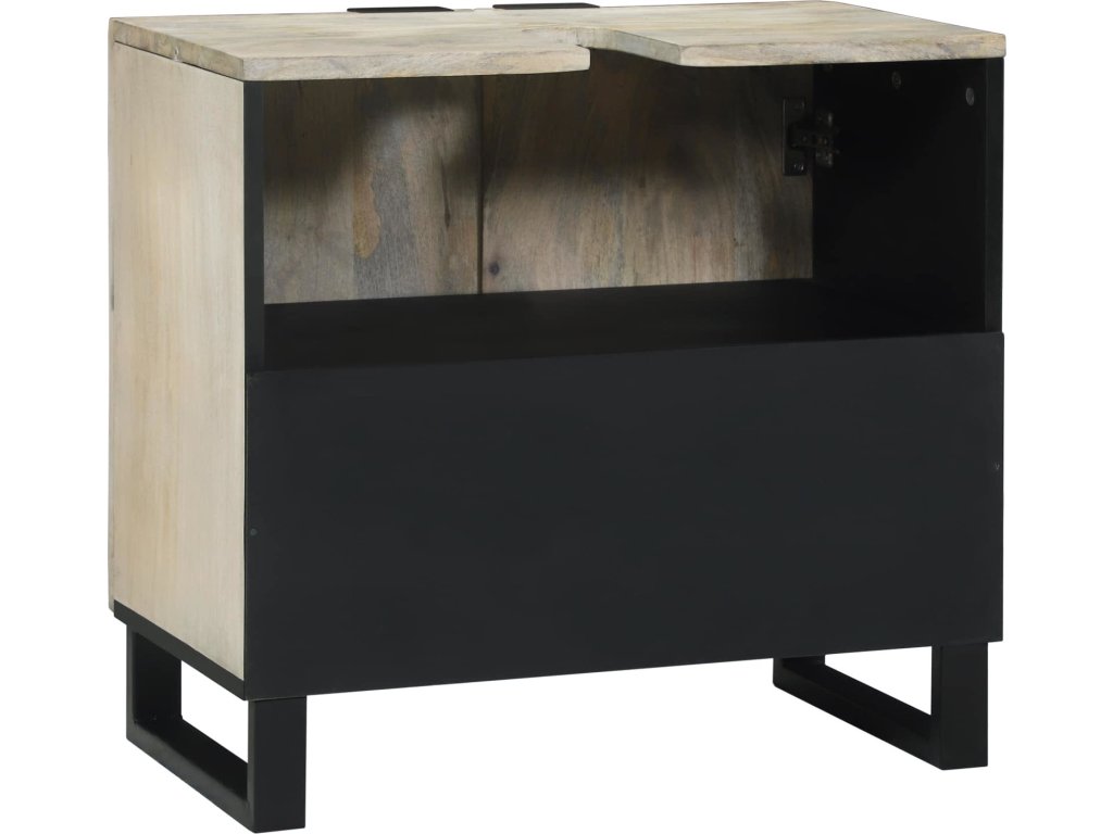 Tento koupelnový skříňka je ideální na úložný prostor pro jakoukoliv moderní koupelnu. S elegantním minimalistickým designem kombinuje funkčnost se stylem a hodí se do každého interiéru. Konstrukce z inženýrskýho dřeva a železné nohy zajišťujou stabilitu a dlouhou životnost. Texturovanej černej povrch dodává eleganci, což z něj dělá středobod místnosti.