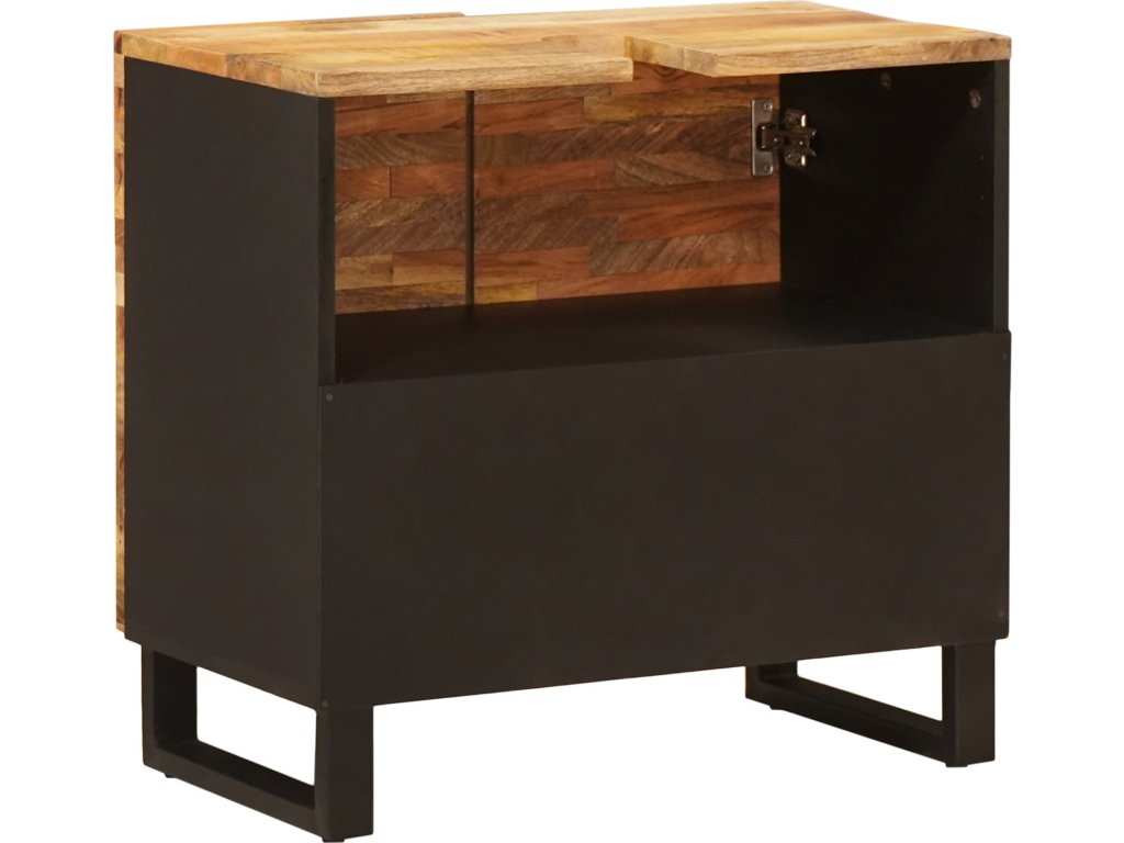- Masivní konstrukce z mangového dřeva: Tato skříňka je nejen krásná, ale i solidní, vyrobená z mangového dřeva, které dodává teplo a přírodní výraz. Je robustní a odolává vlhkosti v koupelně.