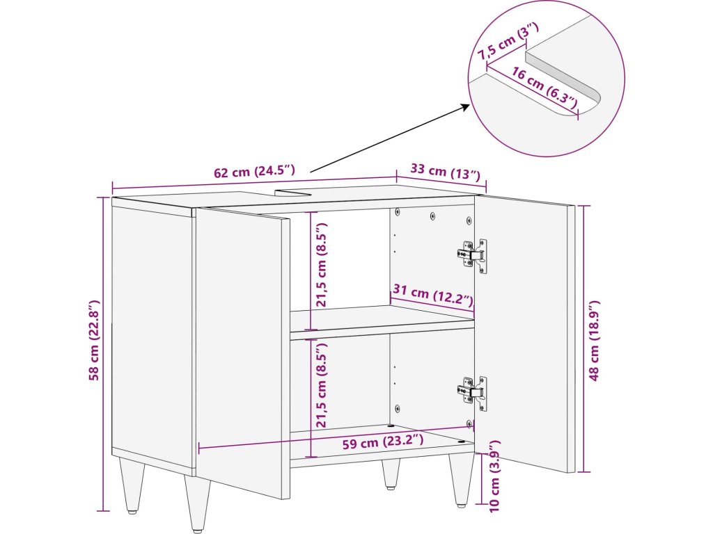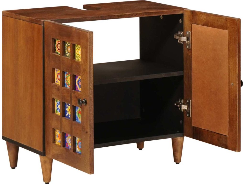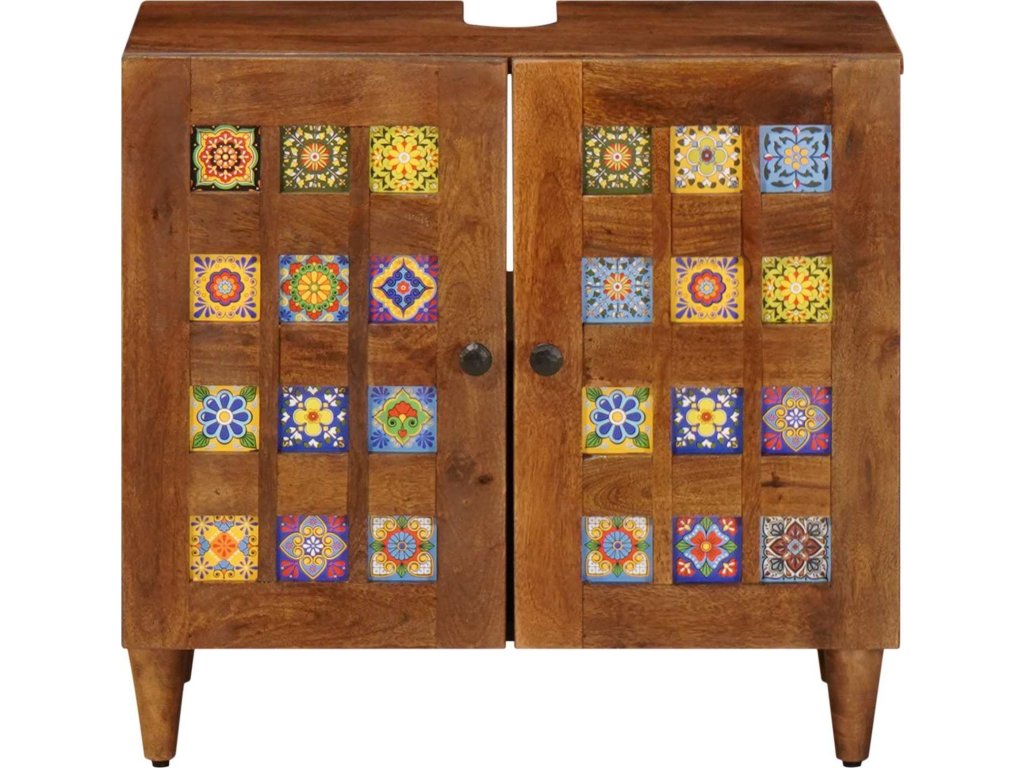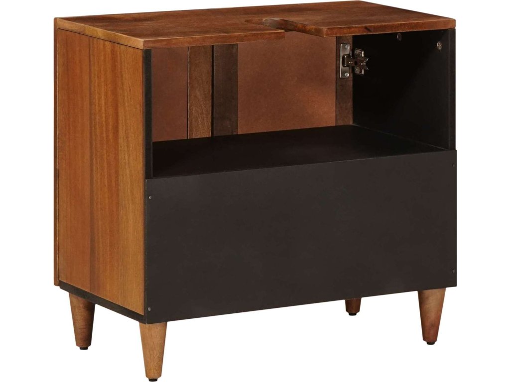 Toto je kvalitní koupelnová skříňka pod umyvadlo, která zkrášlí a zefektivní moderní domov. Hodí se do různých koupelen a její design spojuje jednoduchost, moderní styl a praktičnost. Osloví vás masivní mangové dřevo a kov, které vytváří příjemnou atmosféru a vylepšuje každý koupelnový dekor. Představte si místnost bez chaosu, kde je vše na dosah ruky, a přitom s nádechem sofistikovanosti.