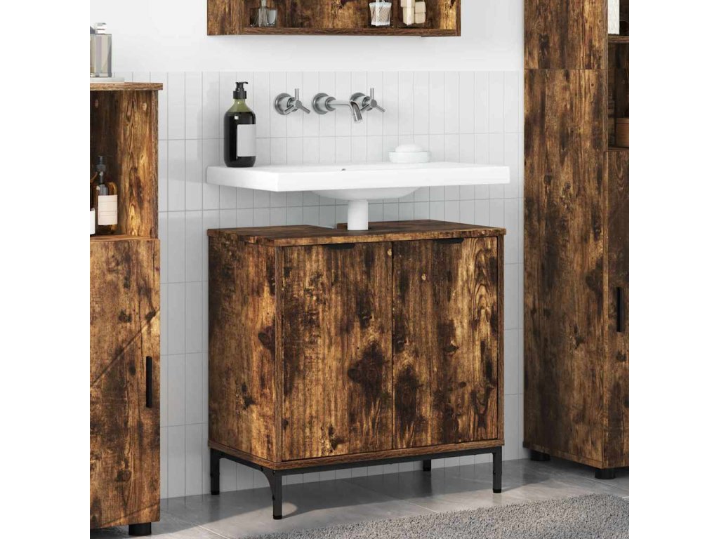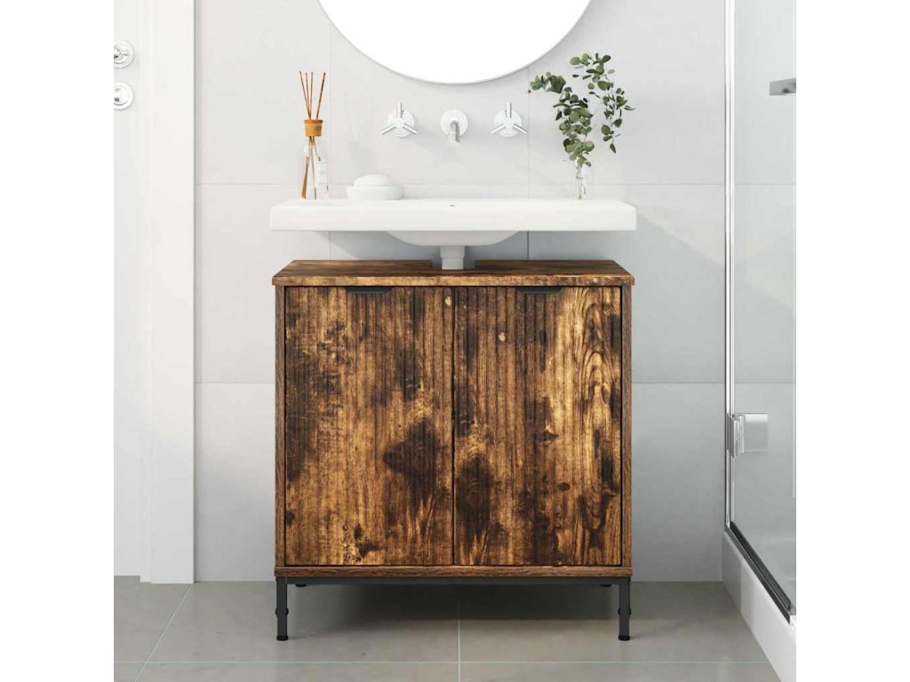 Skříňka pod umyvadlo se dveřmi Kouřový dub 60,5 x 33,5 x 61 cm [883419]