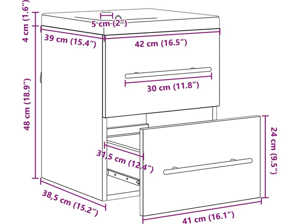 - 1 x Umyvadlo: 42 x 39 x 18 cm (DxŠxV)