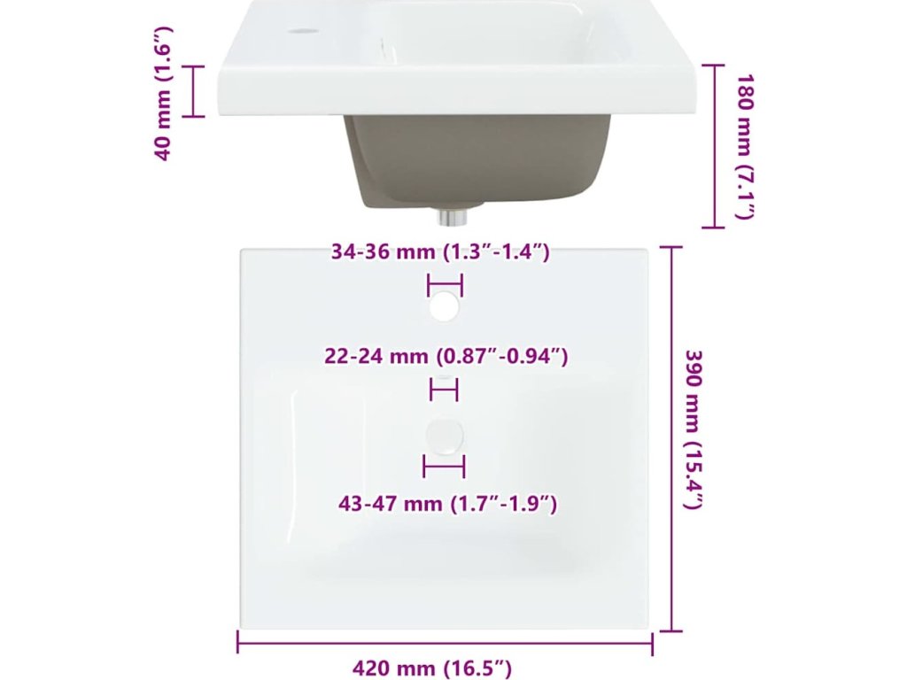 | 1 x Umyvadlo: | 42 x 39 x 18 cm (DxŠxV) |