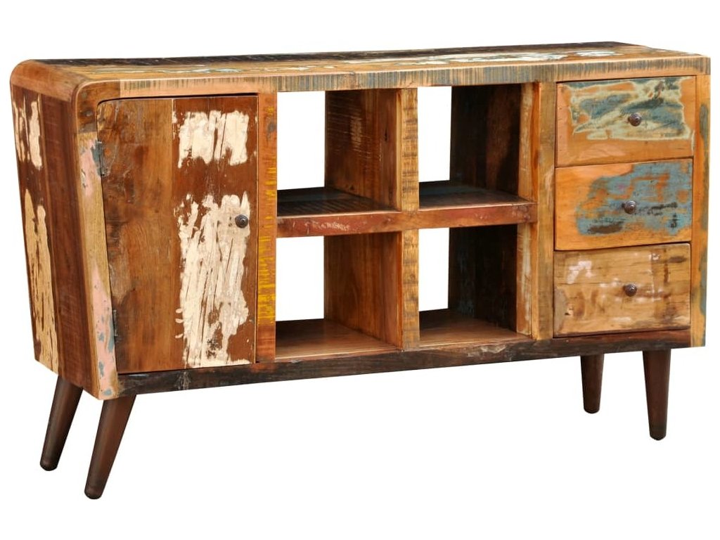 Skříňka s dvířky, 4 policemi a 3 zásuvkami recyklované dřevo [240957]