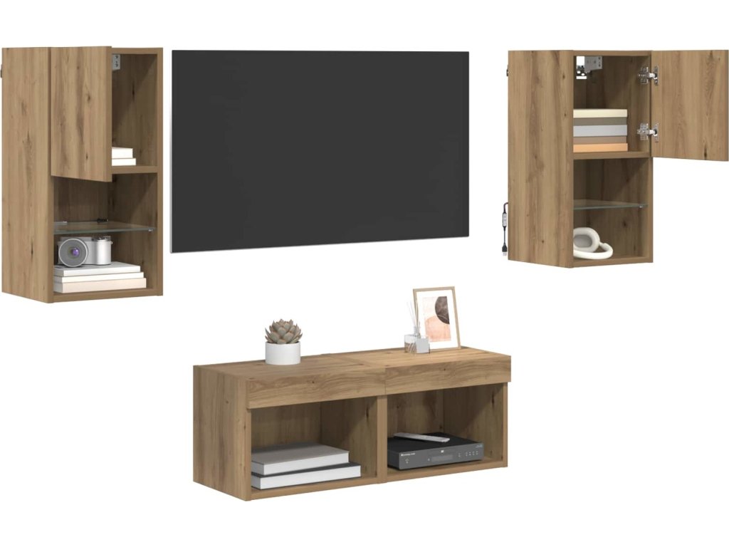 Skříňky na TV zeď 4 pcs Artisanový dub kompozitní dřevo [3402915]