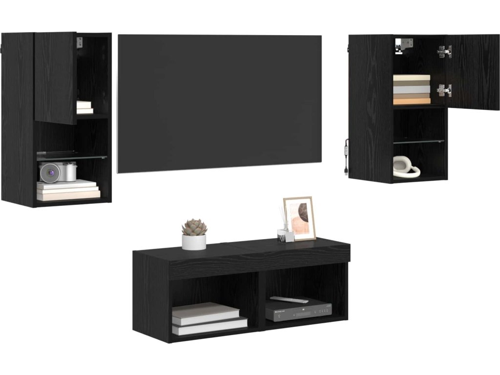 Skříňky na TV zeď Nástěnný 4 pcs Černý dub kompozitní dřevo [3402916]