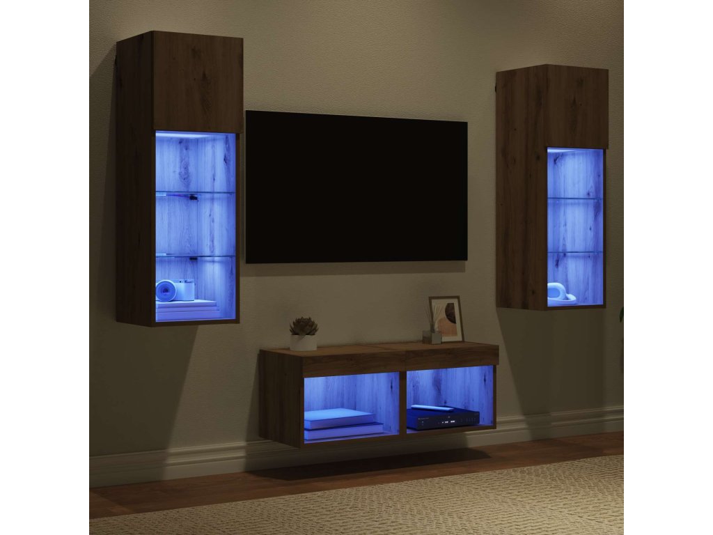 Skříňky na TV zeď Nástěnný 4 pcs Černý dub kompozitní dřevo [3402918]