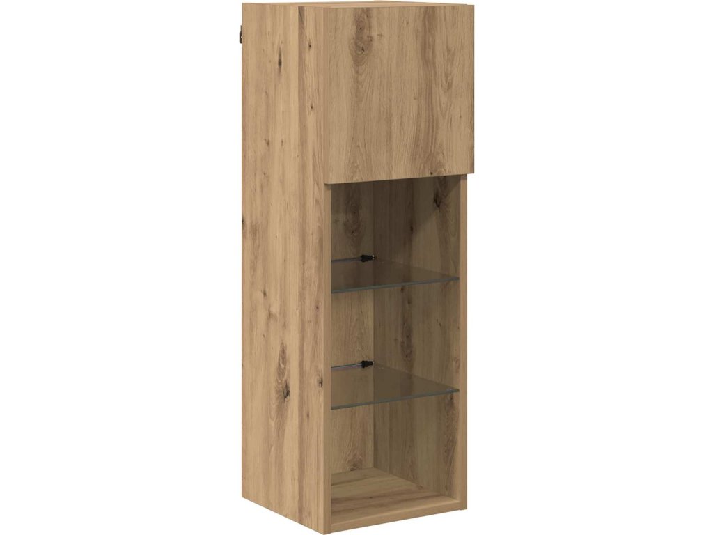 - Součásti: Dveře na pantech a skleněné police dávají skříni moderní šmrnc. Police umožňují jasný pohled na vaše věci a dveře přidávají styl i organizaci.