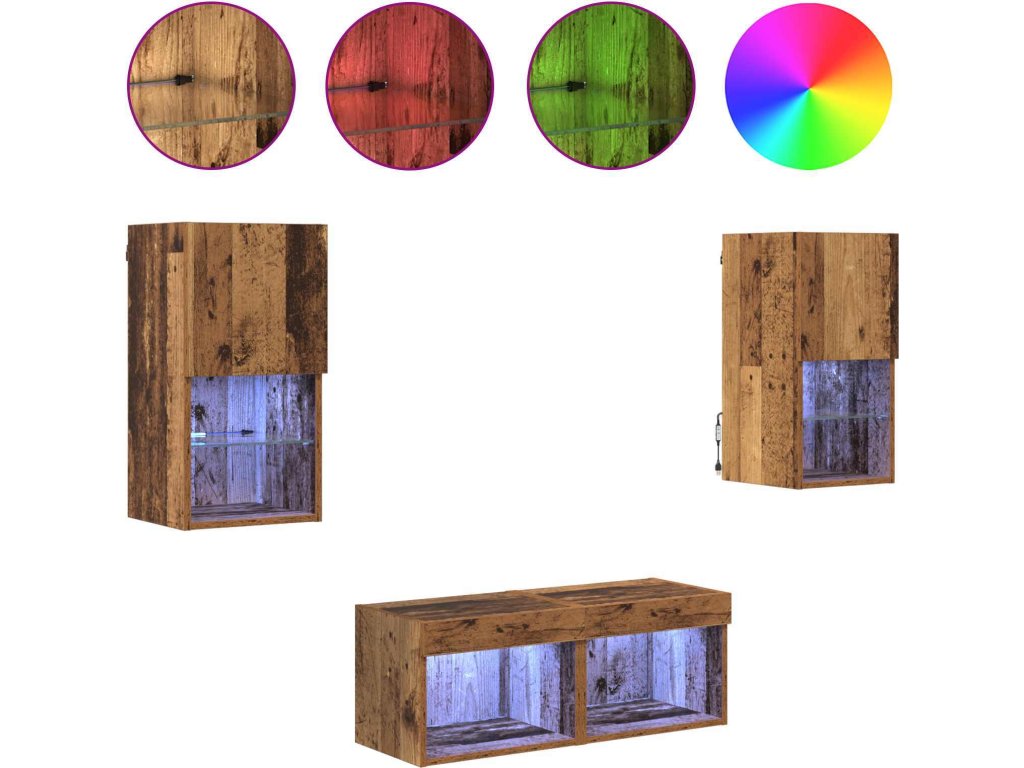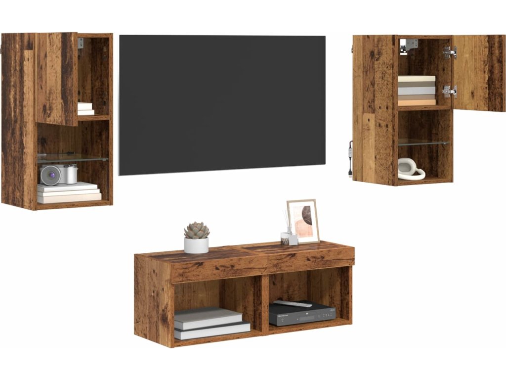 Skříňky na TV zeď Nástěnný 4 pcs Staré dřevo kompozitní dřevo [3402914]