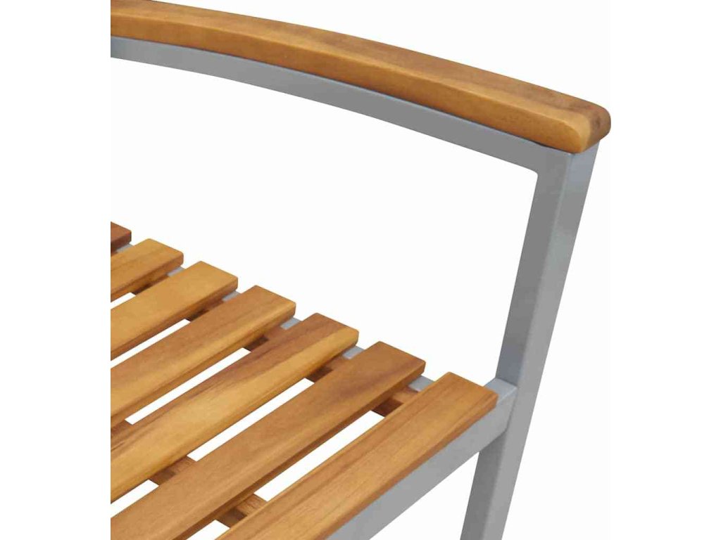 - Součásti: Křeslo má pohodlné opěrky vyrobené z kvalitního akáciového dřeva, což znamená jednotný design. Ocelové nohy poskytují pevnou oporu, i na nerovném povrchu.