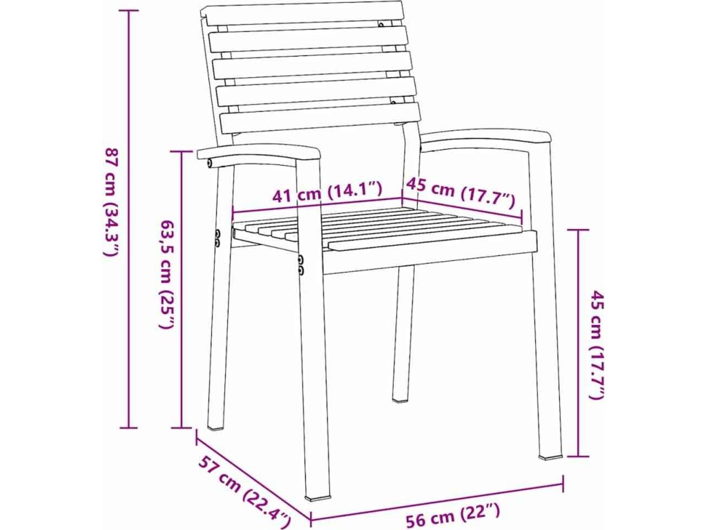 Toto stohovatelné zahradní křeslo spojuje moderní styl s funkčností. Hlavně se hodí ven, ať už na terasy nebo dvůr. Jeho elegantní obdélníkový tvar a minimalistický design udělají dojem na každé zahradní párty nebo při odpočinku. Přírodní dřevěná textura a odolný ocelový rám dodávají křeslu moderní vzhled a zajišťují pohodlí a odolnost.