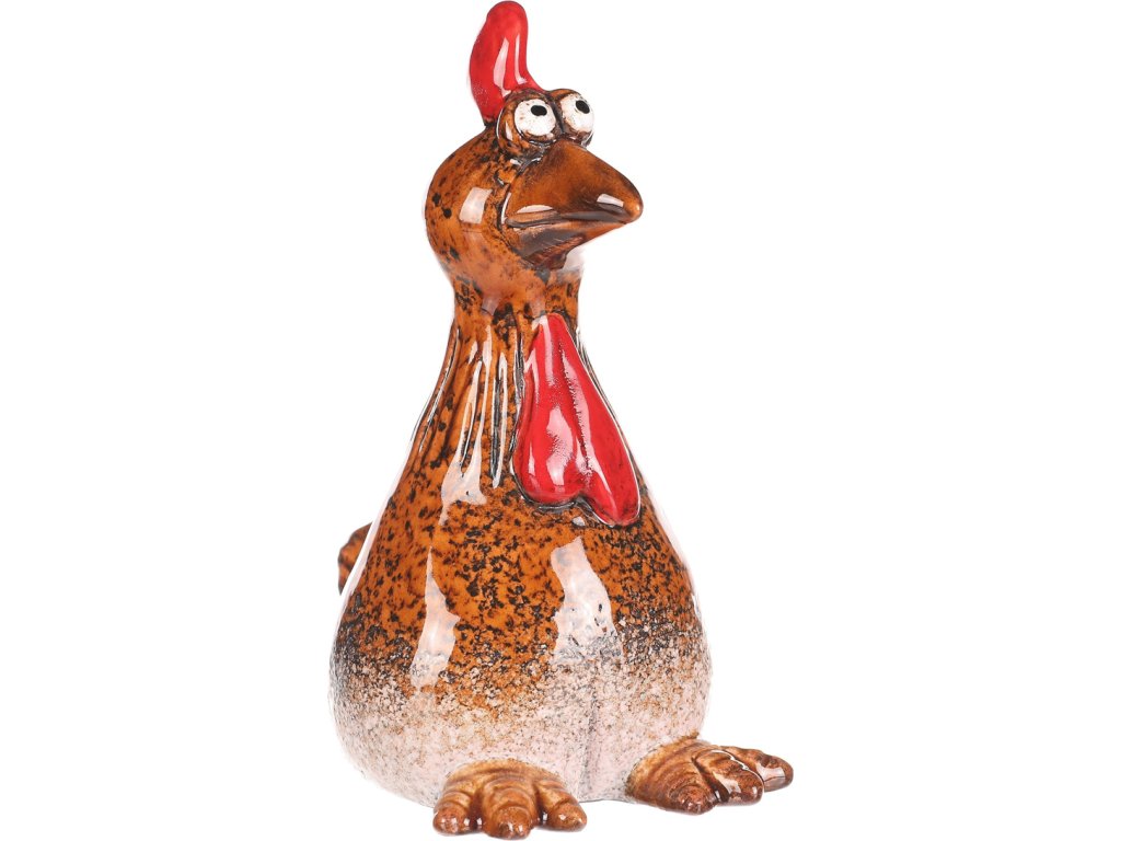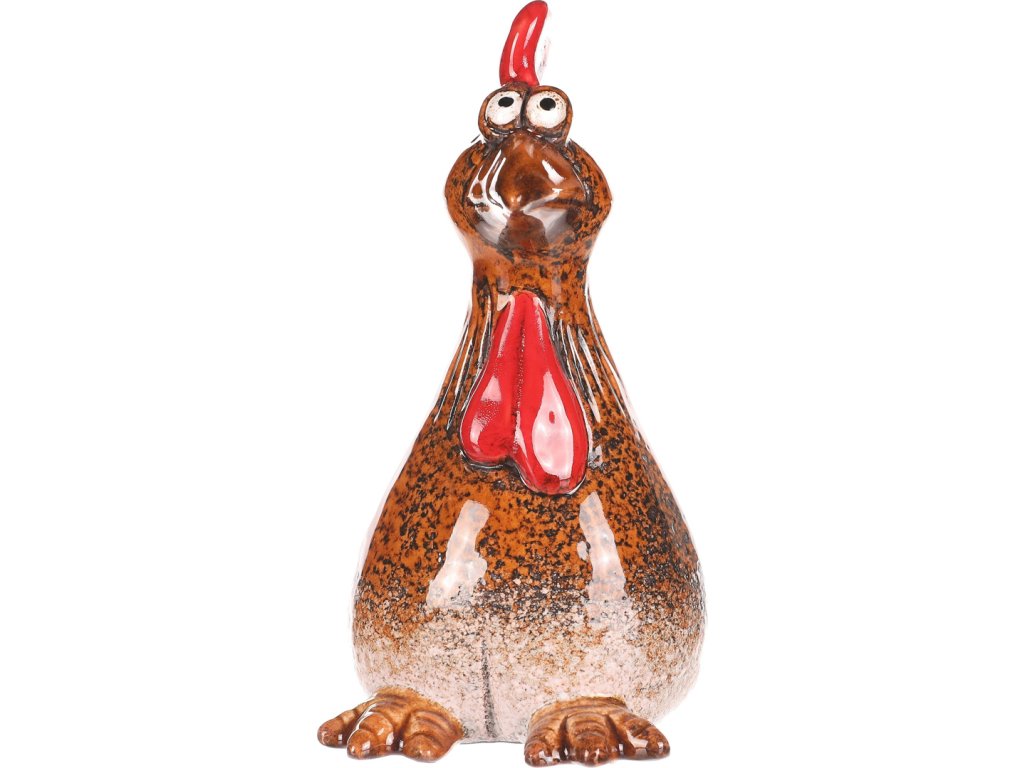 Veselá zahradní figurka slepice s vykulenýma očima a humorným výrazem přináší do vašeho prostoru spoustu zábavy. Skvělá je pro oživení fádních míst na plotě nebo v zahradě, přičemž otvor zespodu umožňuje snadné nasazení na kůl plotu, ale lze ji také postavit na stůl nebo poličku. Rozveselte svůj venkovní prostor touto roztomilou a vtipnou dekorací.