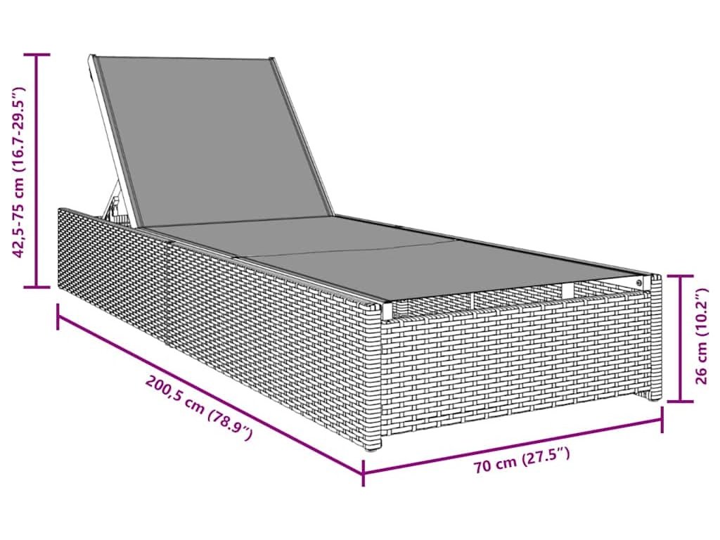 Toto sluneční lehátko je perfektní pro vaše venkovní prostory a dodá jim šmrnc. S moderním designem a čistými liniemi je ideální volbou pro zahrady a terasy. Sedák z polyratanu vám poskytne styl i pohodlí, takže se budete chtít rozvalit naplno. Perfektně se hodí pro ty, co mají rádi jednoduchý a funkční nábytek.