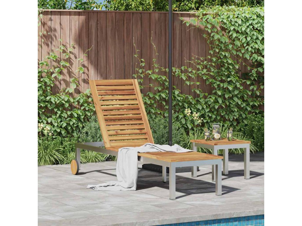 - Stavba z nerezové oceli Toto lehátko je z odolných materiálů a nerezová ocel mu dodává moderní vzhled a pevnost. Stříbrný odstín ladí s různými venkovními dekoracemi a robustní konstrukce zajišťuje stabilitu i ve všelijakém počasí.