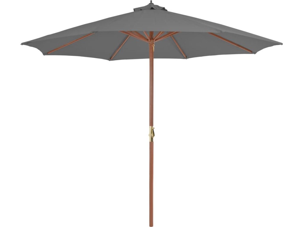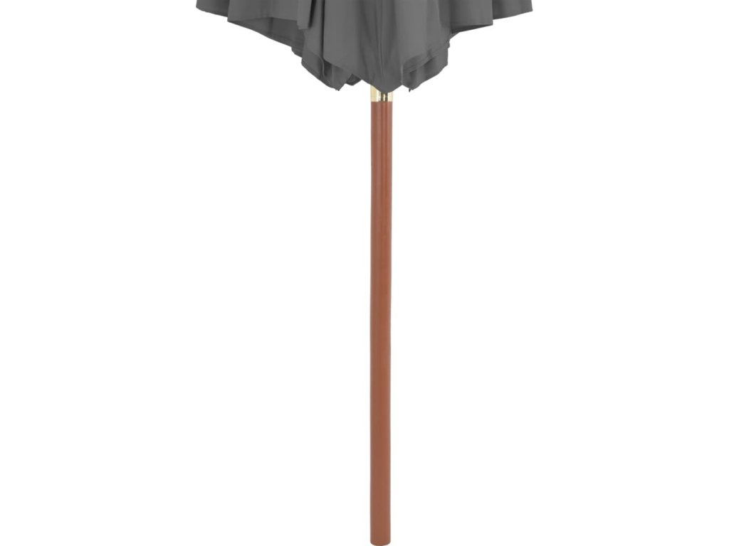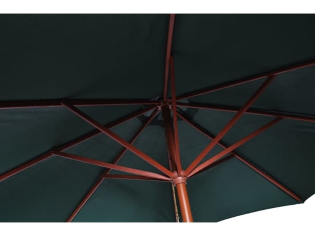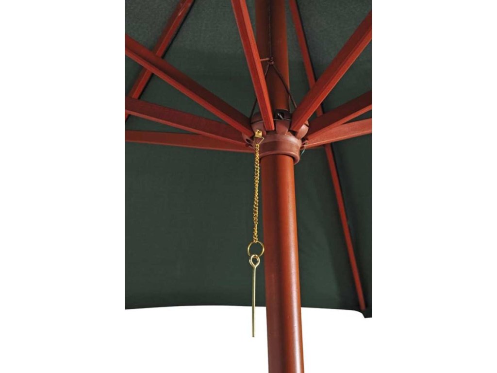 Rám je vyroben z tvrdého dřeva a je vybaven bezpečnostním kolíkem, který deštník bezpečně drží v otevřené poloze. Pomocí rukojeti můžete stříšku velmi snadno roztáhnout. Potah je vyroben z polyesteru odolného proti hnilobě.