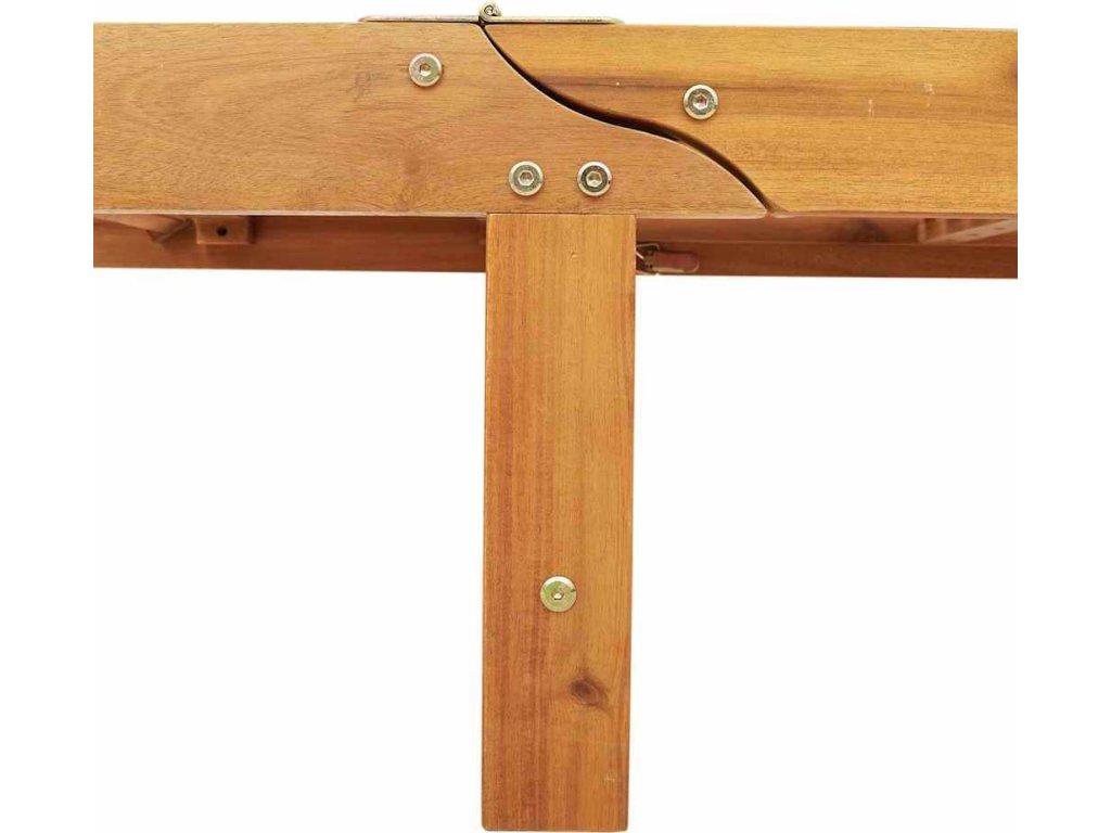- Materiály: Tohle sluneční lehátko je z masivního akáciového dřeva, které je stabilní a silné. Kombinace s polyesterovými prvky zajišťuje pohodlí a krásný vzhled, takže je super pro venkovní aktivity.