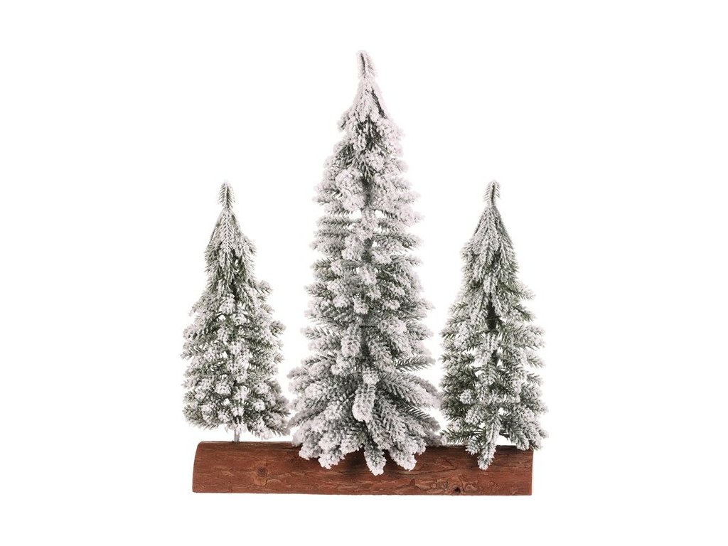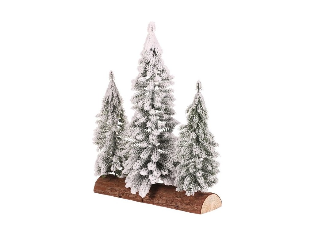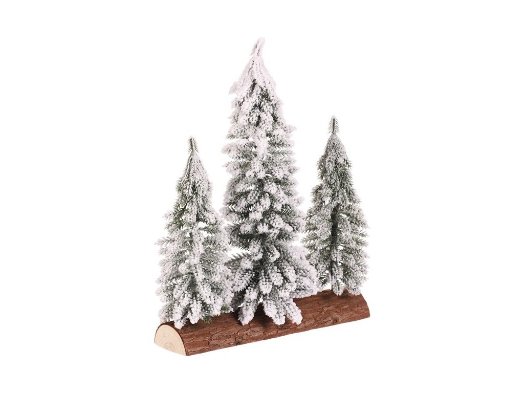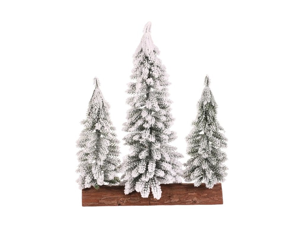 Smrk na špalku - trojice, mini, 34 cm, zelená, zasněžená VAN219 [219]