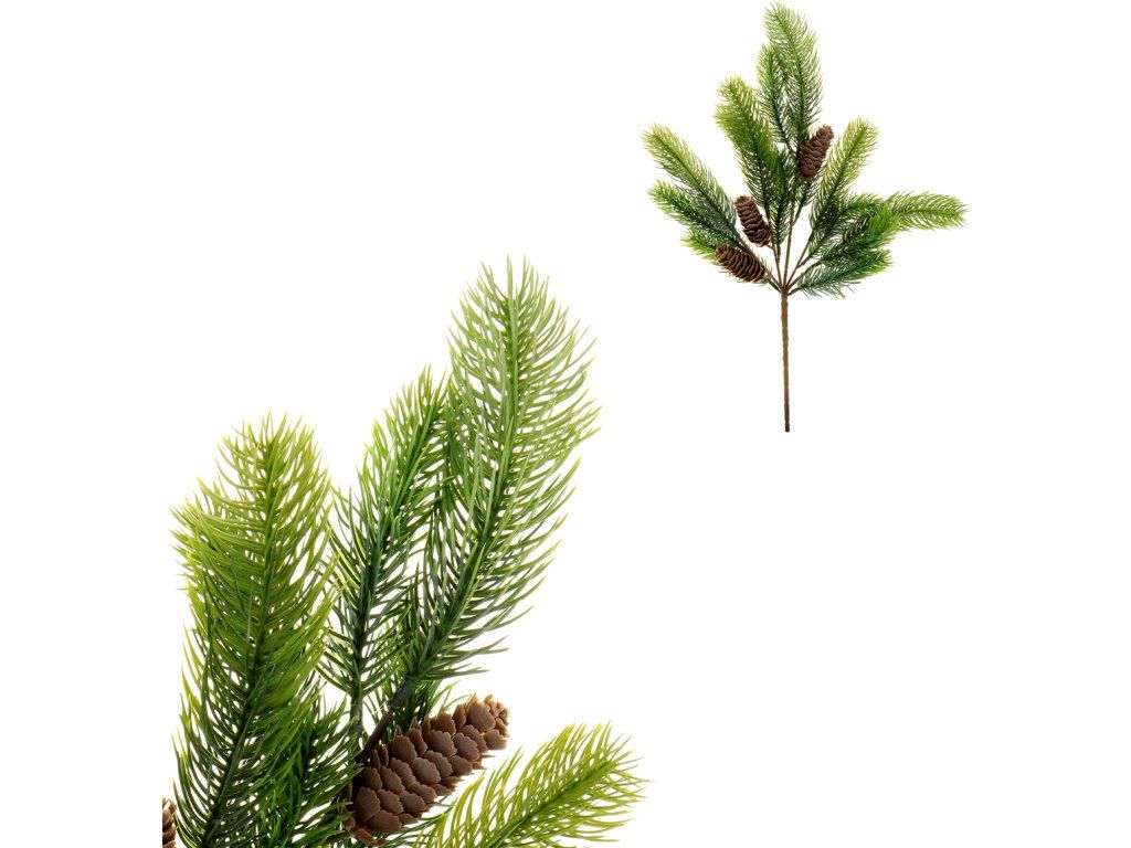 Zahalte svůj domov naplno do vánoční atmosféry díky umělé větvičce s jehličím a šiškami. Hodí se perfektně jako doplněk pro výzdobu, která dodá vašemu prostoru příjemnější vzhled. Své zvolené místo ozdobíte jednoduše a elegantně, přičemž zachováte tradiční vánoční atmosféru. Větvička svým tvarem a univerzálností nabízí nepřeberné množství variant použití a je jen na vaší fantazii, jak s ní naložit. Nespornou výhodou také je, že jí můžete opakovaně používat ve stejné kráse a nikdy vám neuvadne a neopadá. Je to jednoduchý způsob, jak vnést do vašeho domova příjemné sváteční prostředí a vytvořit zázemí pro vaše vánoční oslavy a rodinná setkání.