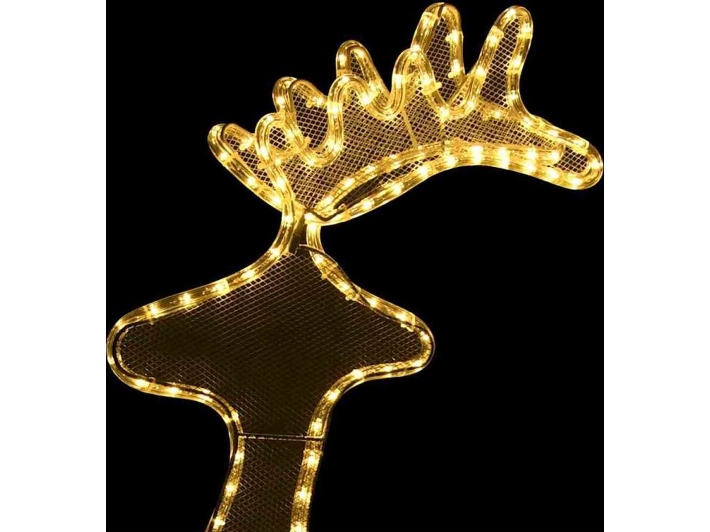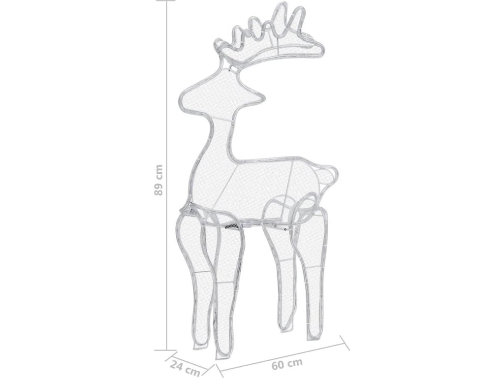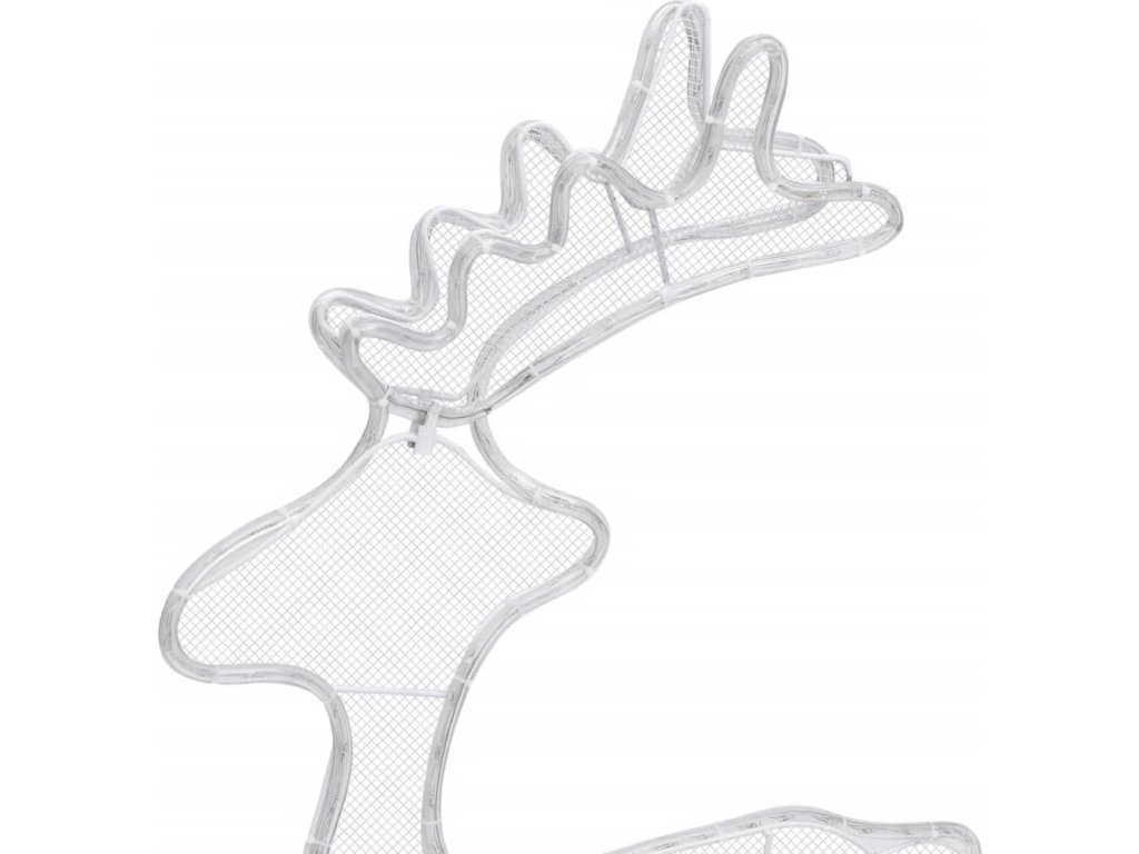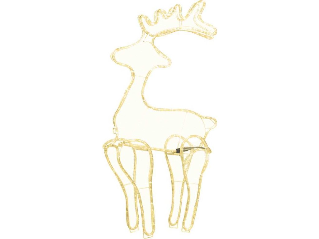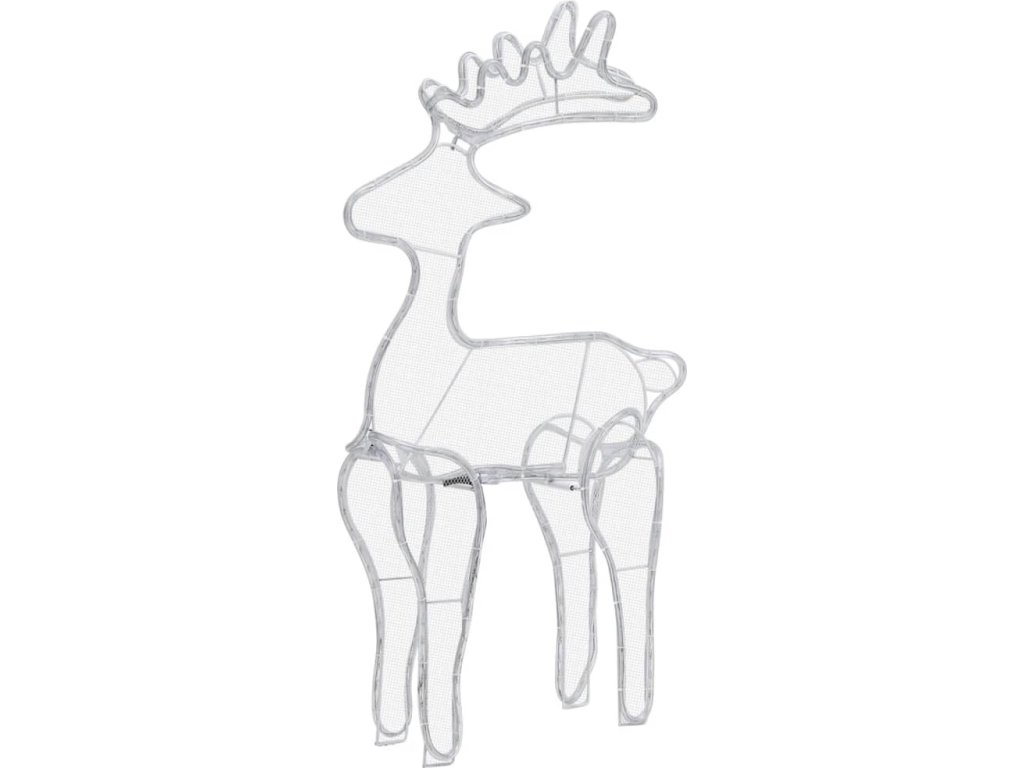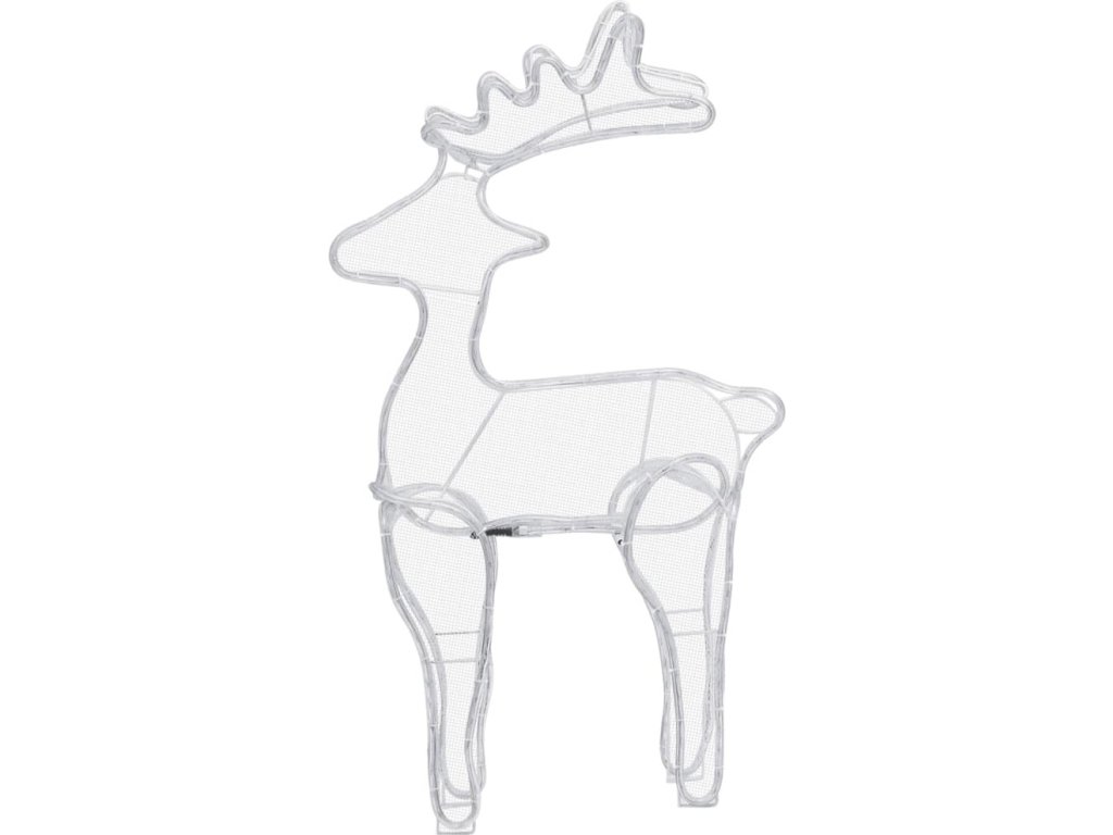 Tato sobí dekorace je vyrobená z PVC a ocelového rámu, který po celou dobu svátků bude vzdorovat povětrnostním vlivům. Dekorace je osvícená 360 LED světly, která jsou energeticky úsporná, s dlouhou výdrží a životností. Tento osvětlený sob má 1,5 m dlouhý kabel s IP44 adaptérem. Lze ho používat v interiéru i exteriéru.