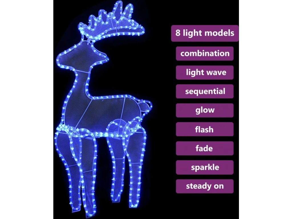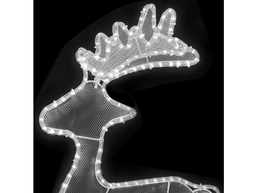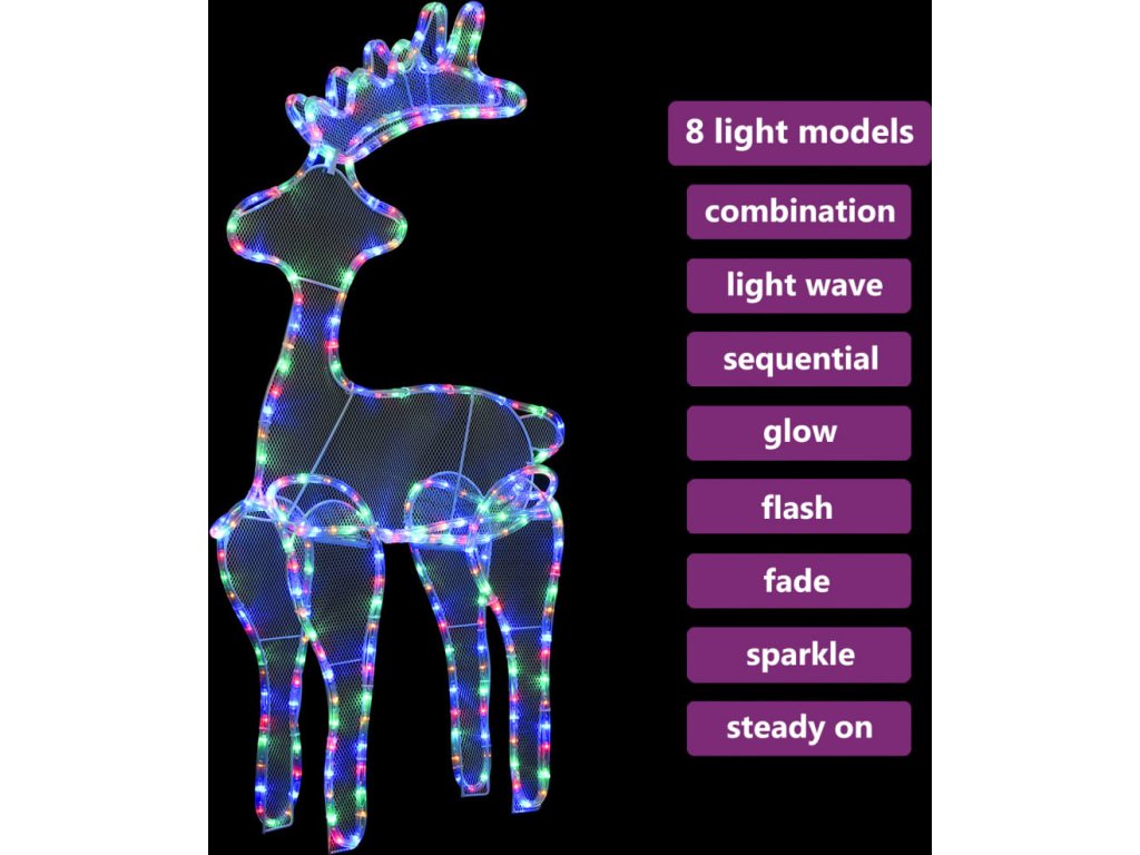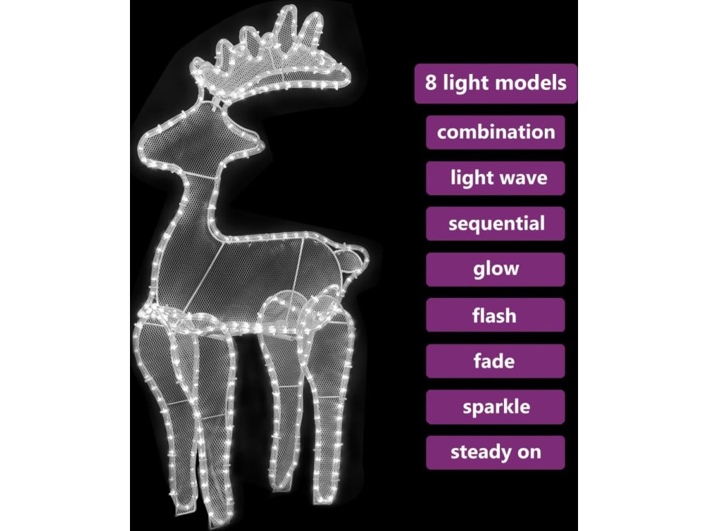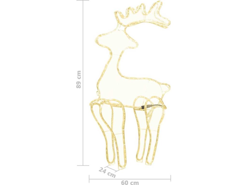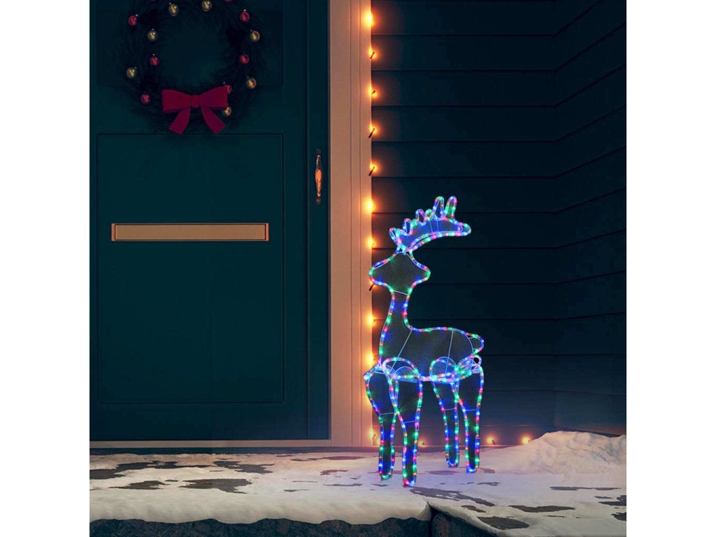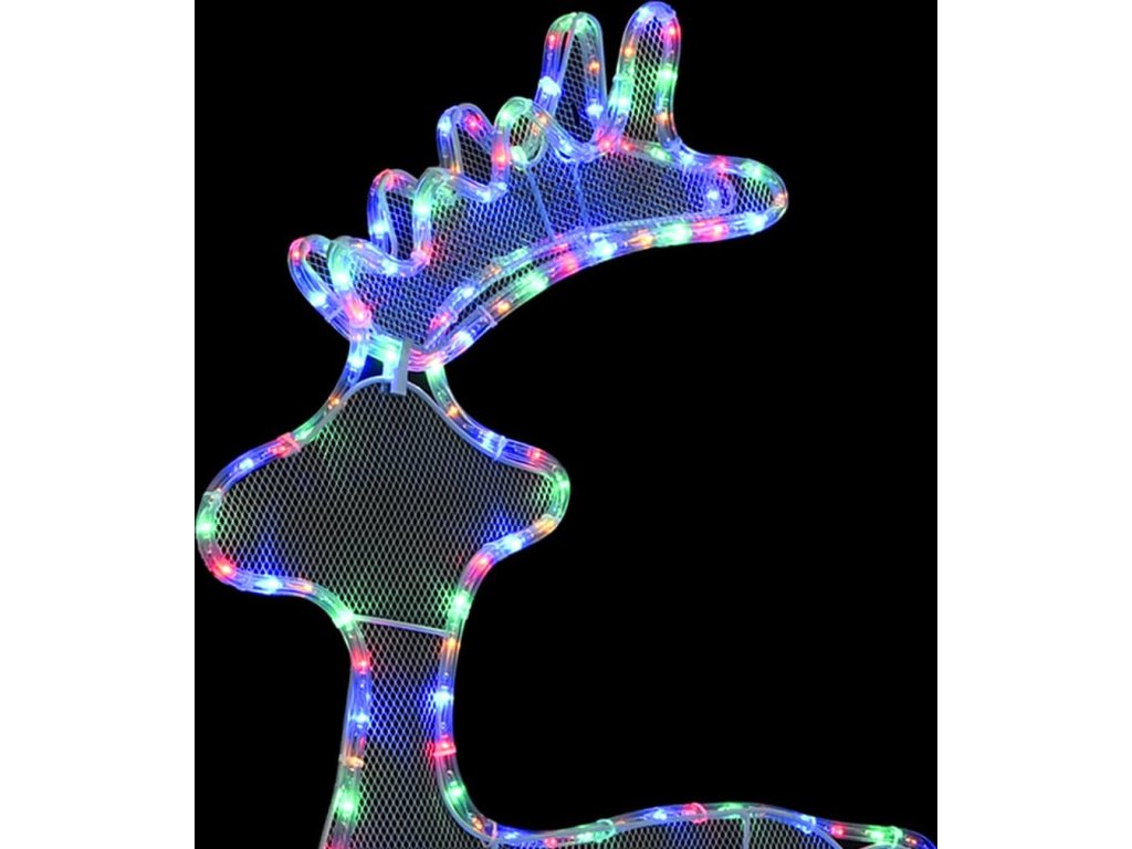 Tato sobí dekorace je vyrobená z PVC a ocelového rámu, který po celou dobu svátků bude vzdorovat povětrnostním vlivům. Dekorace je osvícená 360 LED světly, která jsou energeticky úsporná, s dlouhou výdrží a životností. Tento osvětlený sob má 1,5 m dlouhý kabel s IP44 adaptérem. Lze ho používat v interiéru i exteriéru.