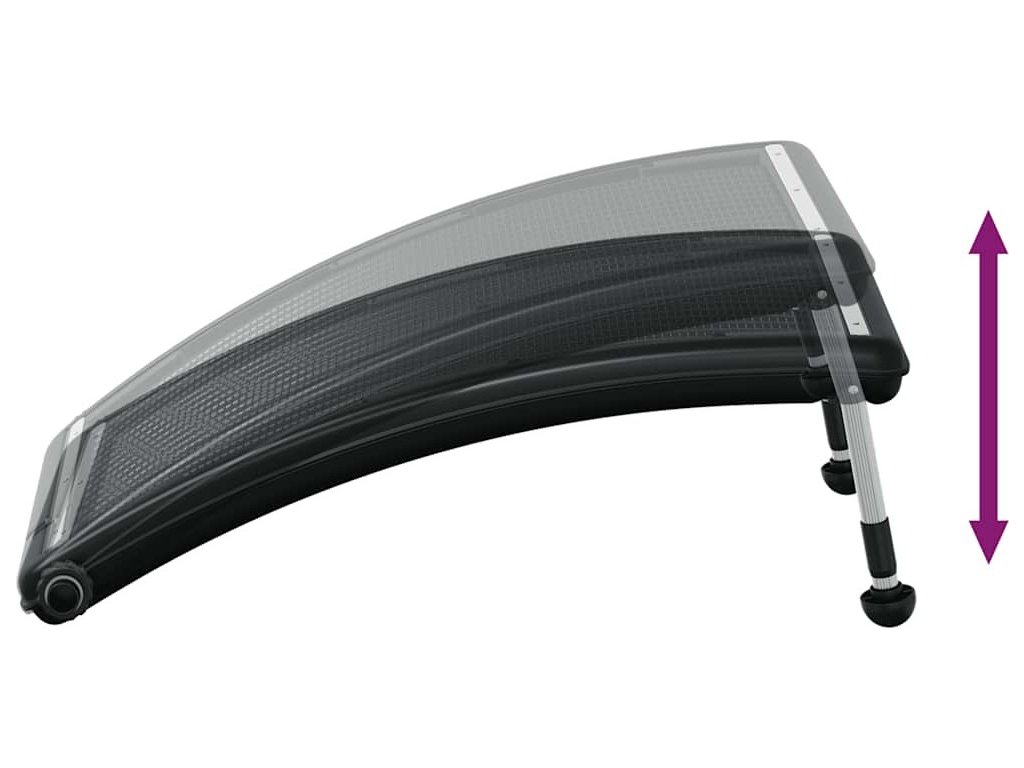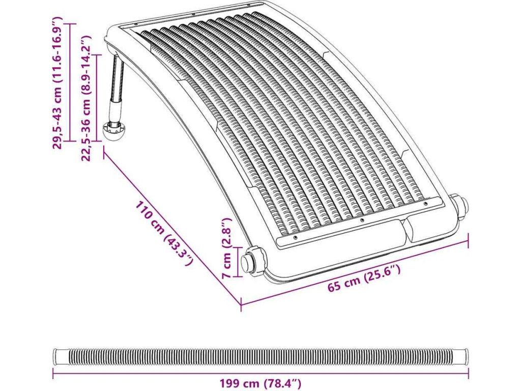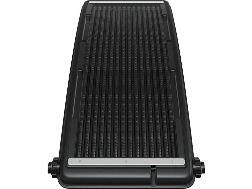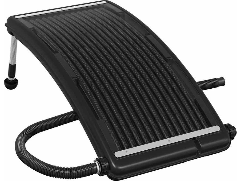 Tento solární ohřevný systém je vyrobený z vysoce kvalitních materiálů, které výborně vzdorují častému vystavení slunci a povětrnostním podmínkám. Zakřivené panely pro ohřev bazénu a nastavitelné nohy zajišťují maximální plochu pro zachycení sluneční energie, což také znamená vyšší účinnost ohřevu.