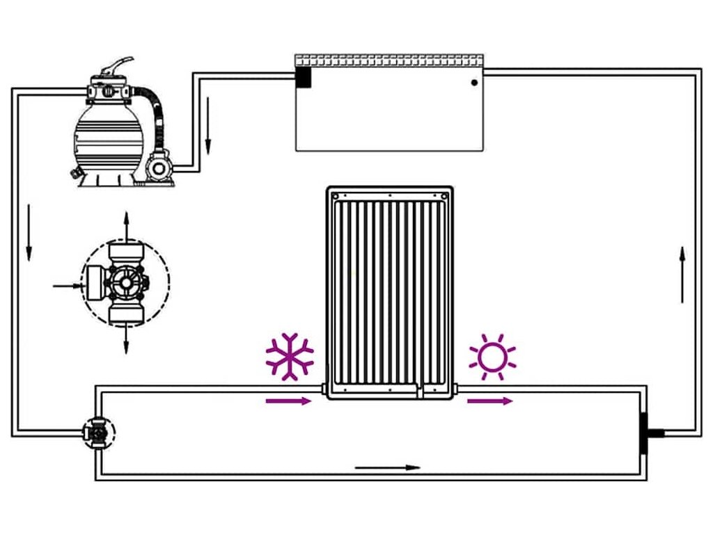Tento solární ohřev bazénu je ideální pro nadzemní bazény. Bazénovou vodu ohřívá solární energií.