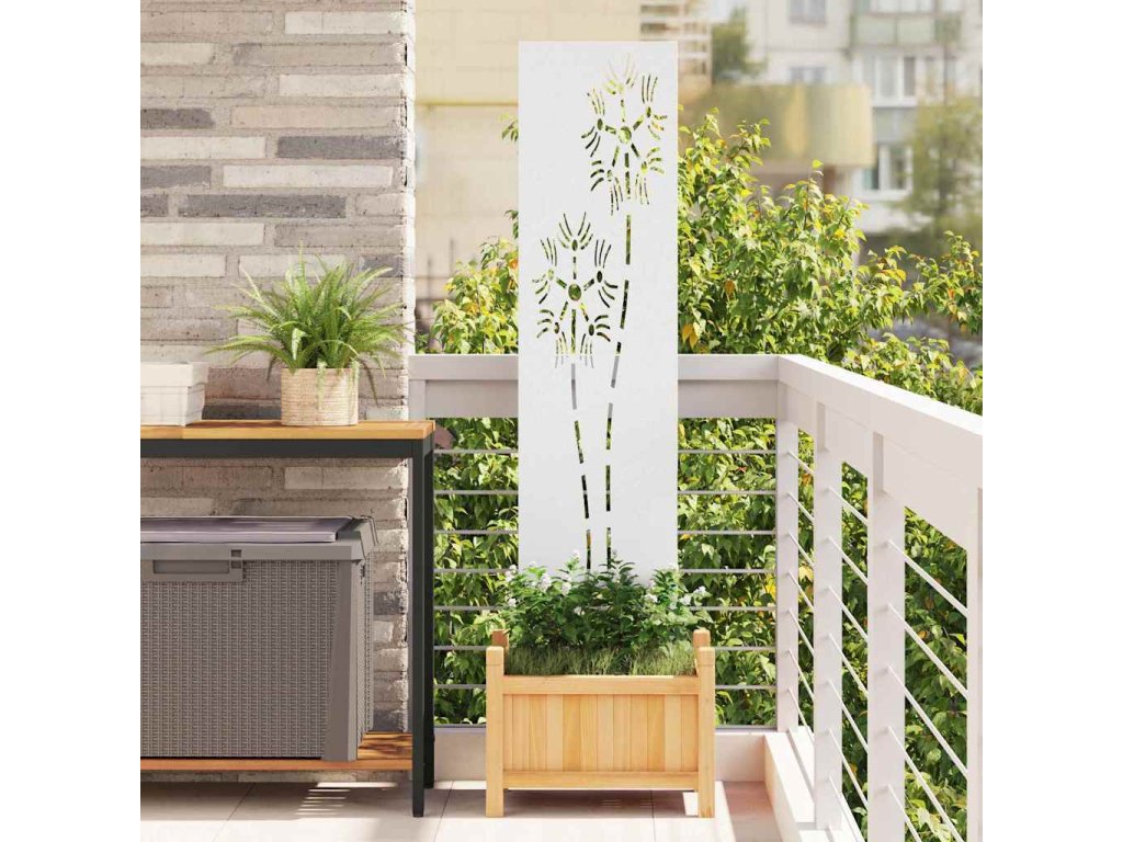 Tento dekorativní zahradní panel je moderním a stylovým prvkem pro zkrášlení venkovních prostor. Elegantní obdélníkový design s dekorativními vložkami oživuje vaši zahradu nebo terasu a zároveň poskytuje soukromí. Ocel s matným povrchem vypadá skvěle, aniž by oslňovala. Ideální pro vytvoření útulného místa, panel spojuje funkčnost s estetikou, čímž se stává nepostradatelným dekorativním prvkem.