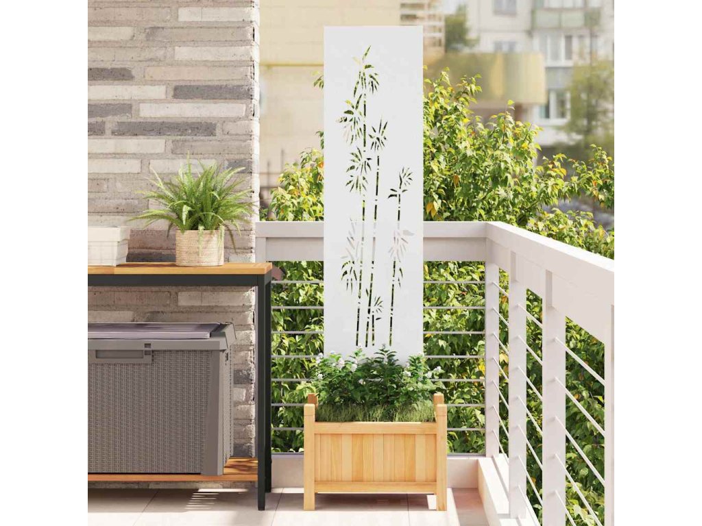 Tento dekorativní zahradní panel je moderním a stylovým prvkem pro zkrášlení venkovních prostor. Elegantní obdélníkový design s dekorativními vložkami oživuje vaši zahradu nebo terasu a zároveň poskytuje soukromí. Ocel s matným povrchem vypadá skvěle, aniž by oslňovala. Ideální pro vytvoření útulného místa, panel spojuje funkčnost s estetikou, čímž se stává nepostradatelným dekorativním prvkem.