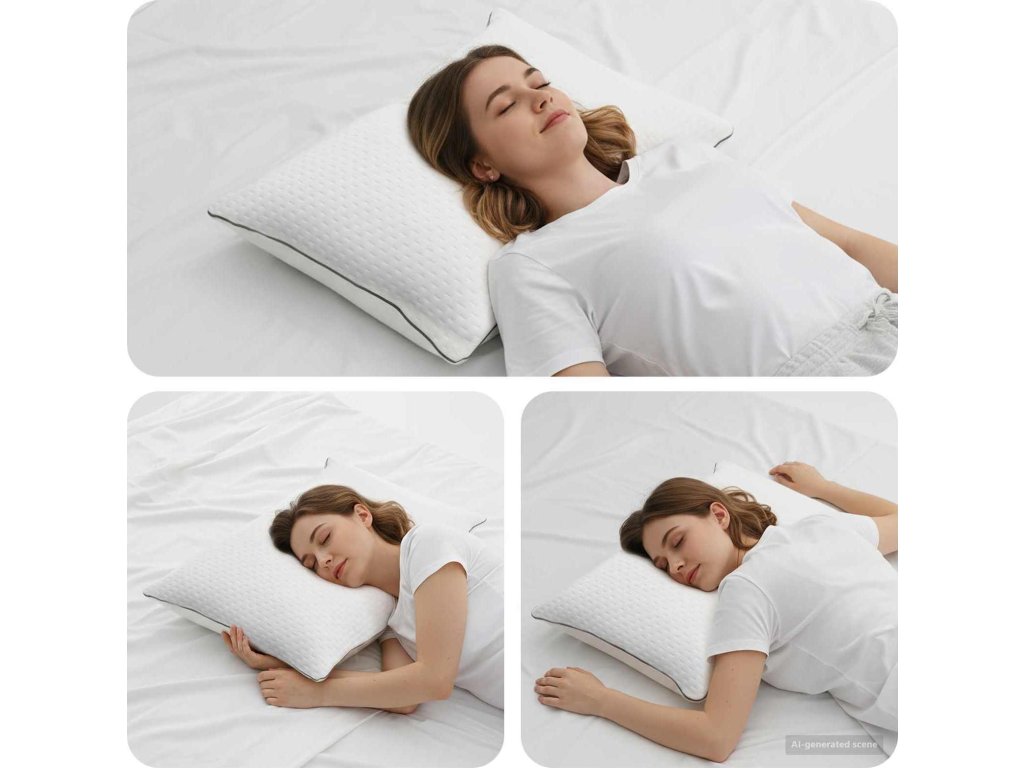 - Ergonomický design Tento polštář byl navržen tak, aby pomáhal udržet krk v pohodlné poloze a zlepšoval kvalitu spánku. Je vhodný pro spáče na zádech, na boku i na břiše.