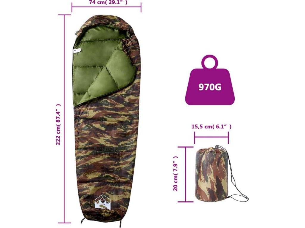- Rozměry spacího pytle: 222 x 74 cm (D x Š)