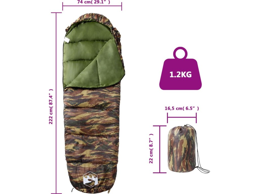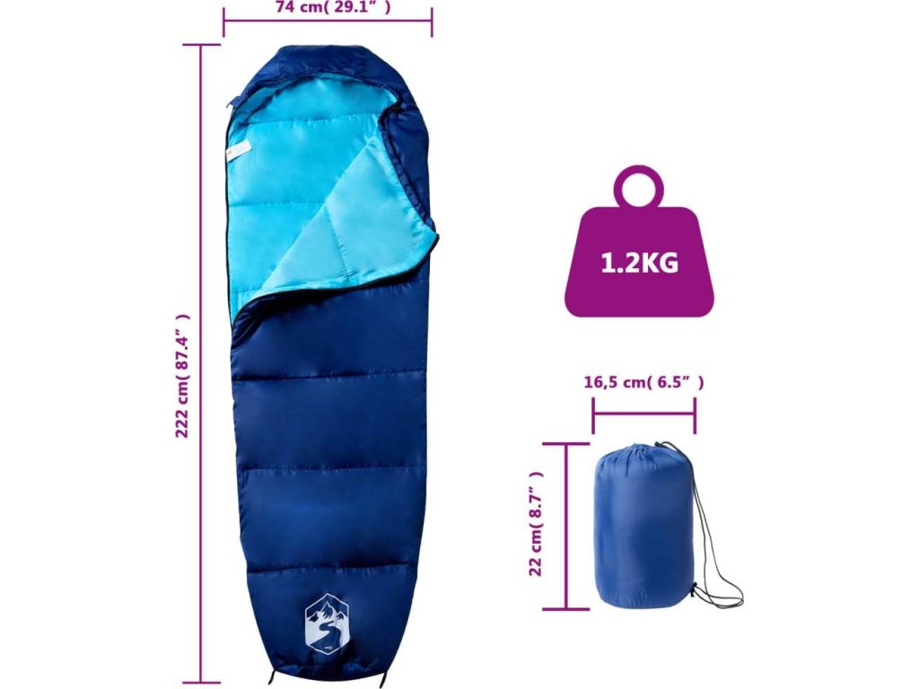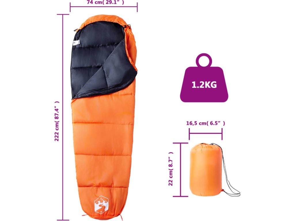 - Rozměry spacího pytle: 222 x 74 cm (D x Š)