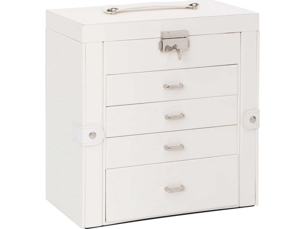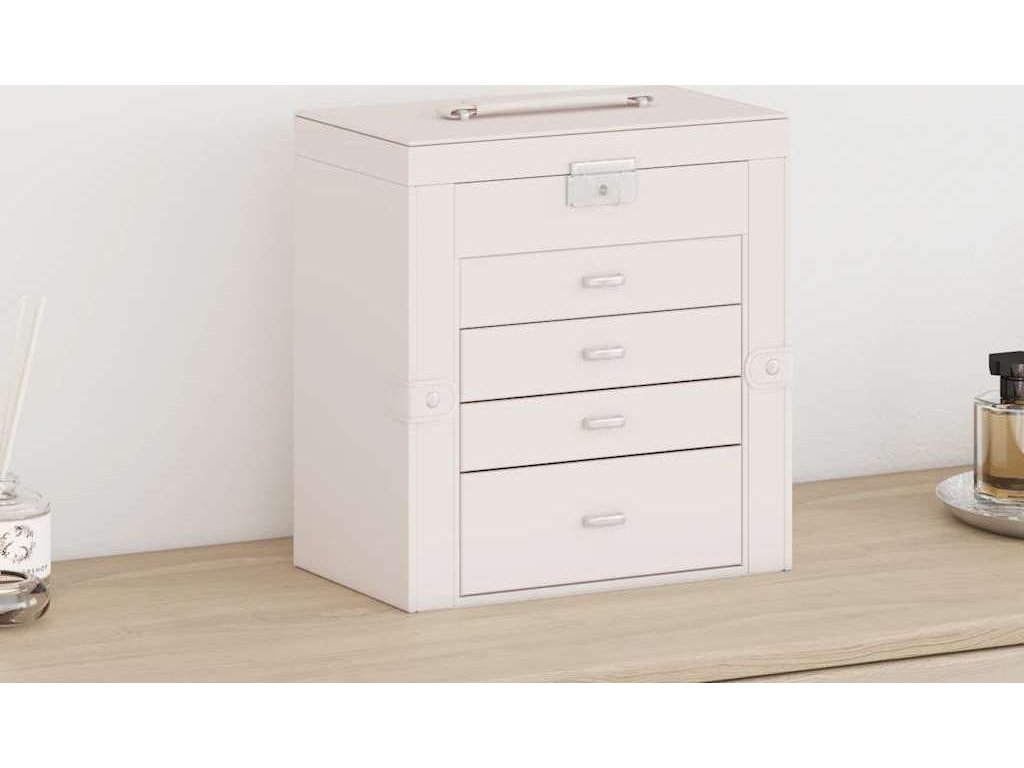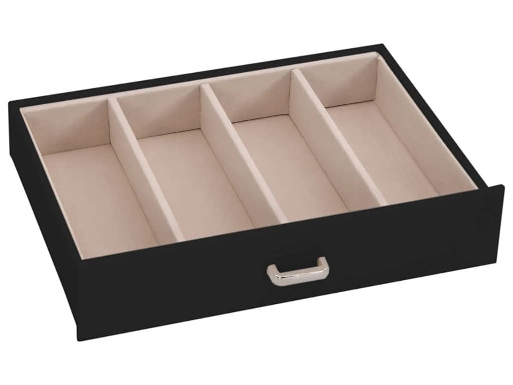 - Bezpečné uložení: Tato šperkovnice je vybavena uzamykatelnou horní vrstvou, která zajišťuje větší bezpečnost drahocenných šperků. Je vybavena odpovídajícími klíči a zajišťuje bezpečné uložení a ochranu cenností.