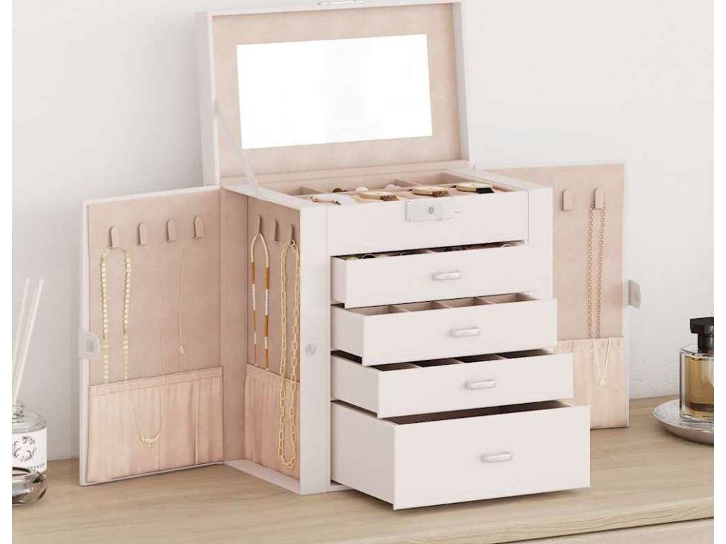 Uspořádejte si snadno svou sbírku šperků pomocí pětivrstvé šperkovnice, která je navržena tak, aby spojovala eleganci a praktičnost.